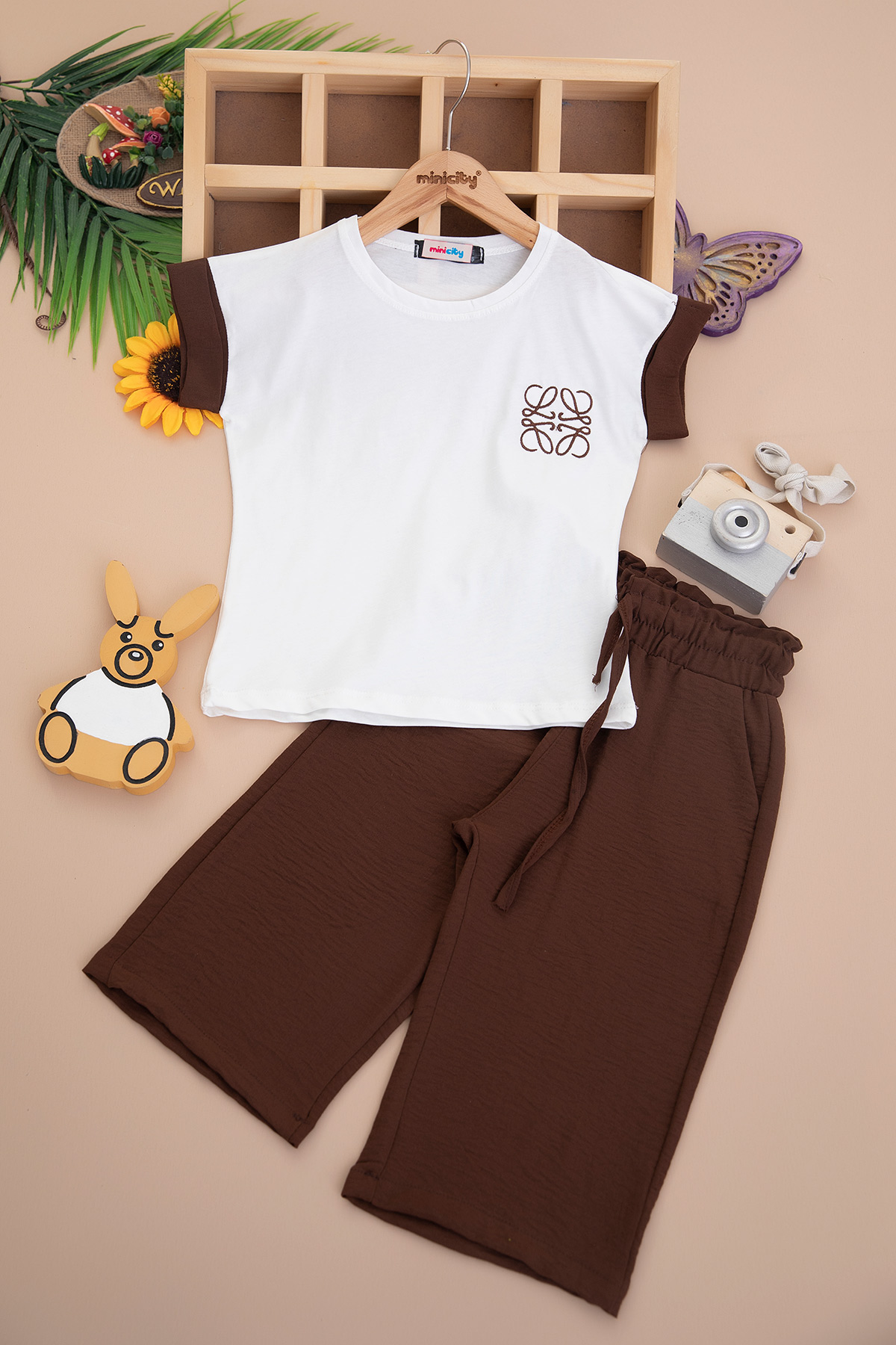 Kız Çocuk Duble Kol Nakışlı Kaprili Takım - 1025 (6-10 Yaş)