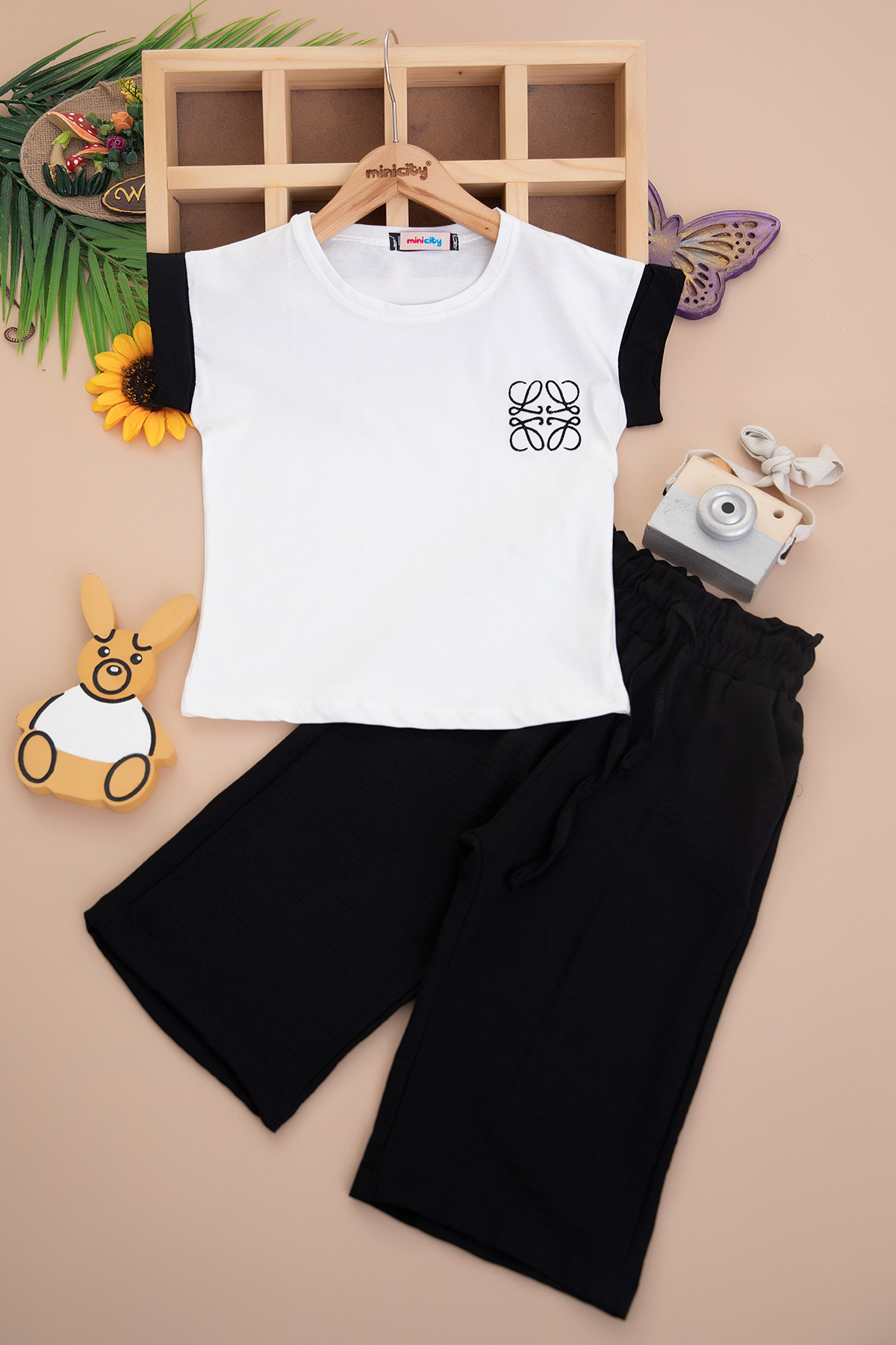 Kız Çocuk Duble Kol Nakışlı Kaprili Takım - 1025 (6-10 Yaş)