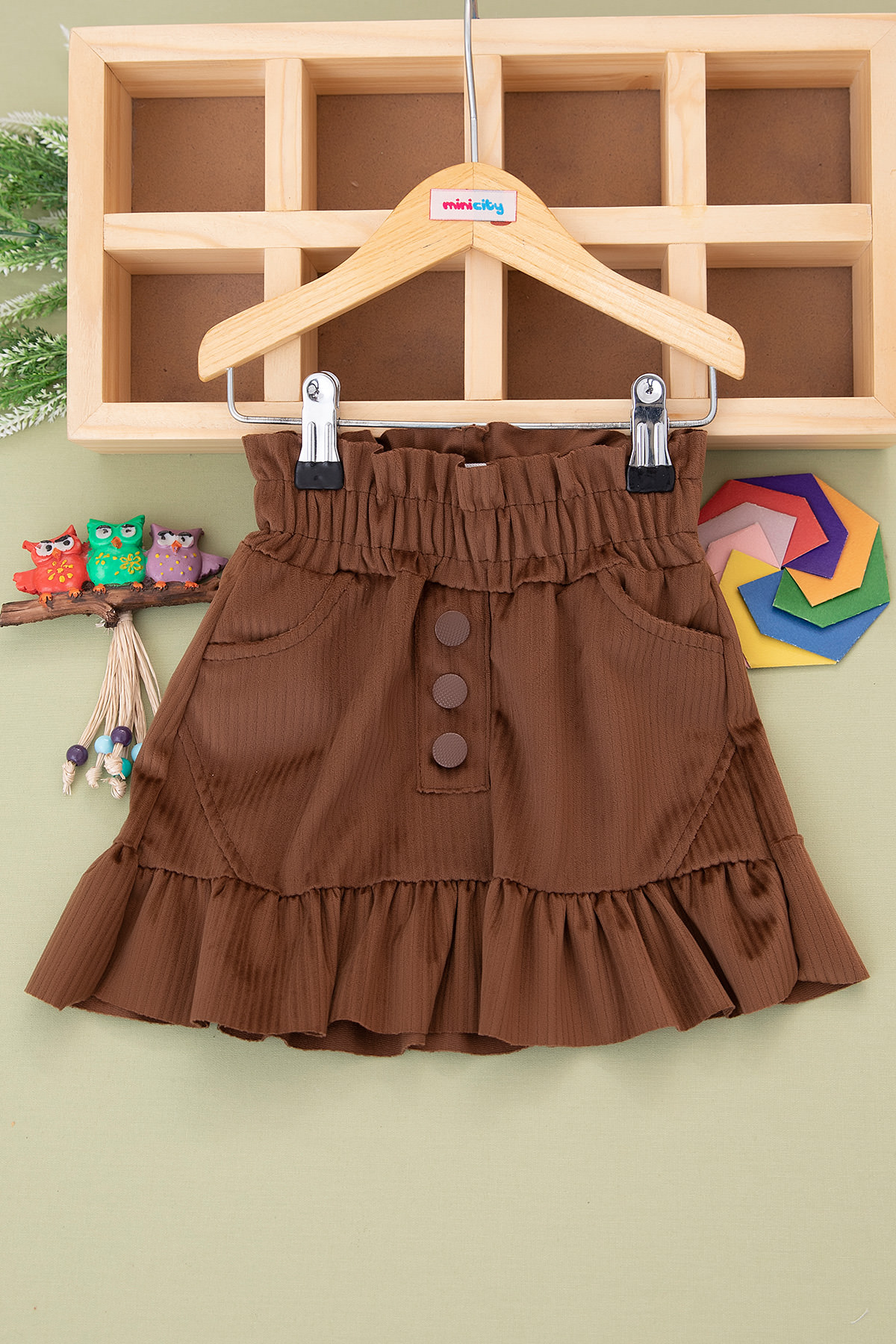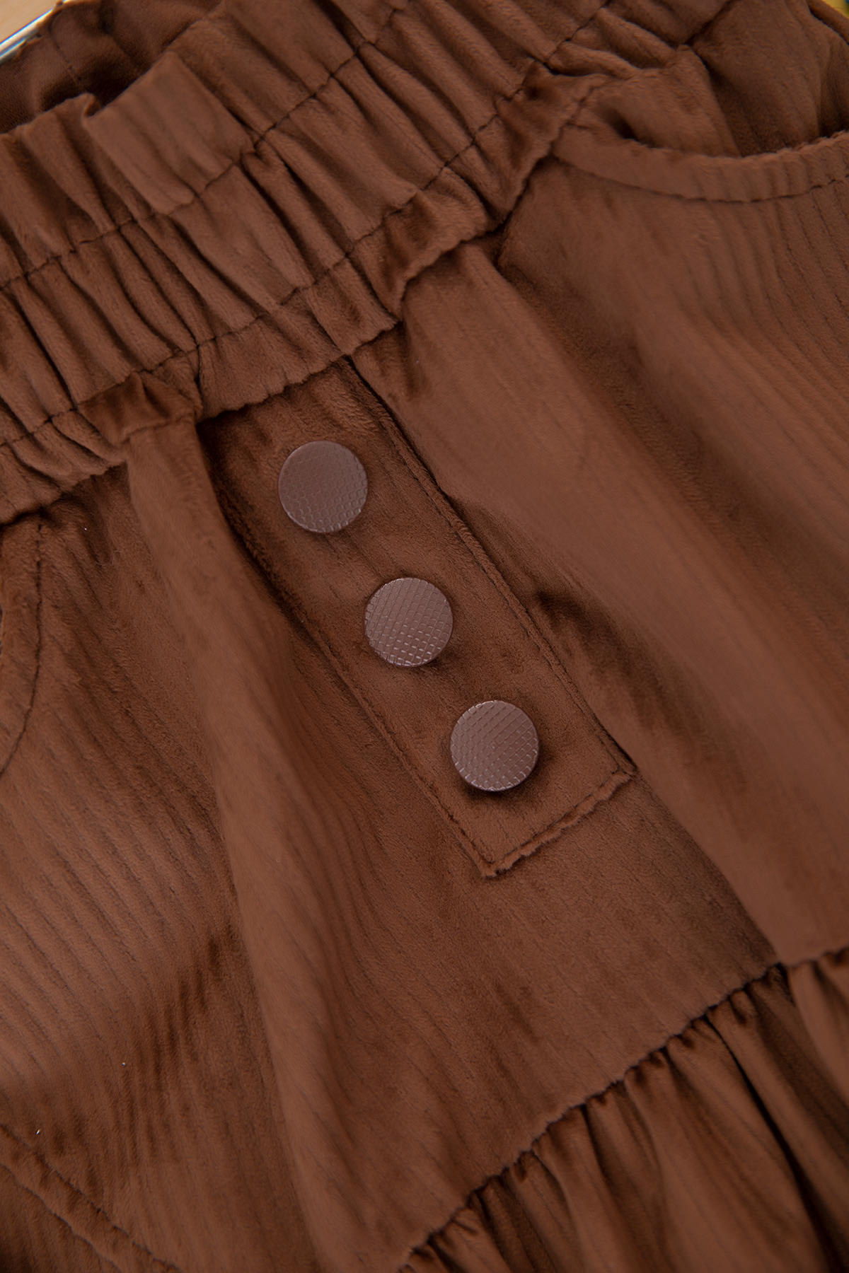 Kız Çocuk Düğmeli Büzgülü Kadife Etek - 26758 (1-5 Yaş)