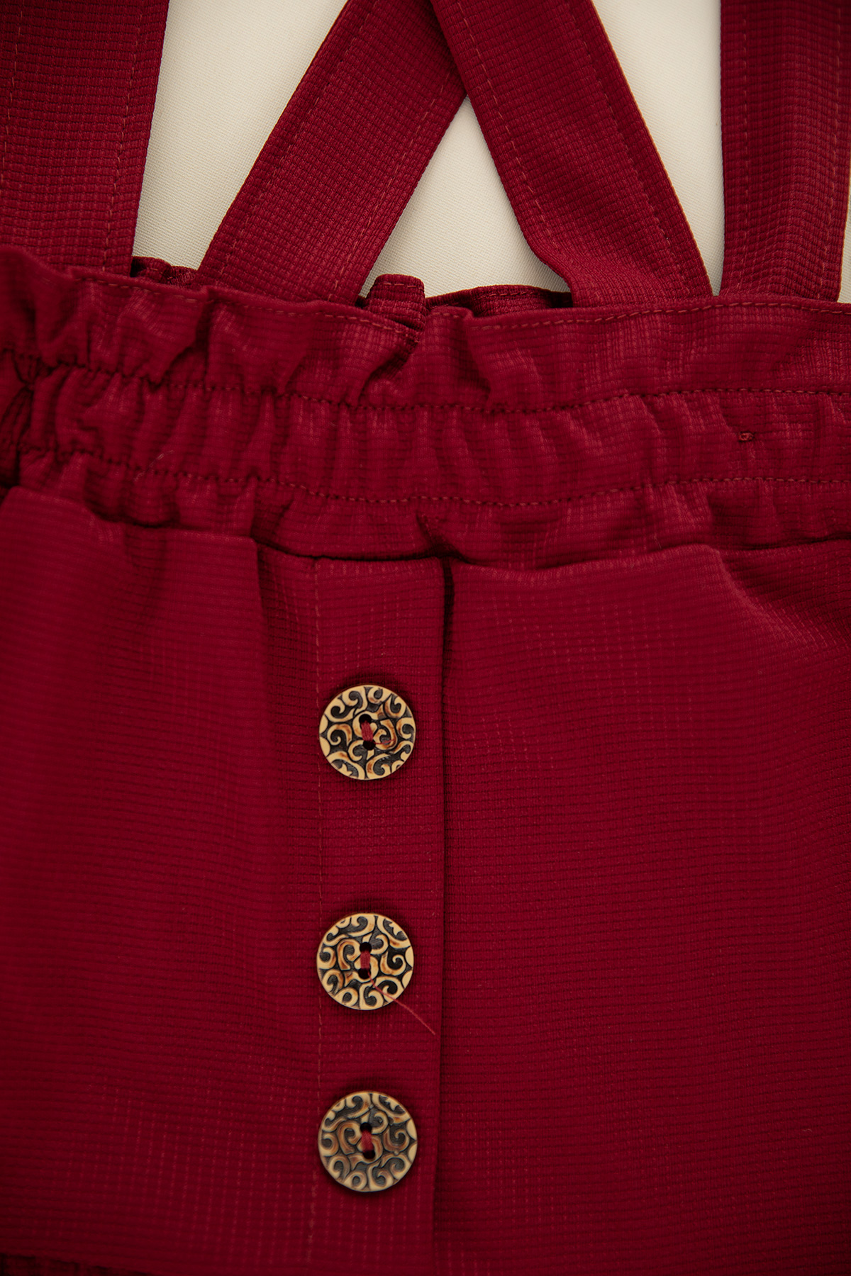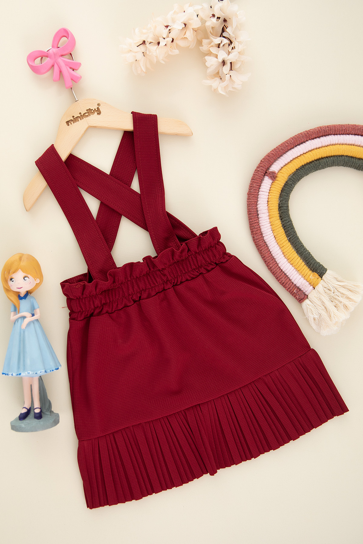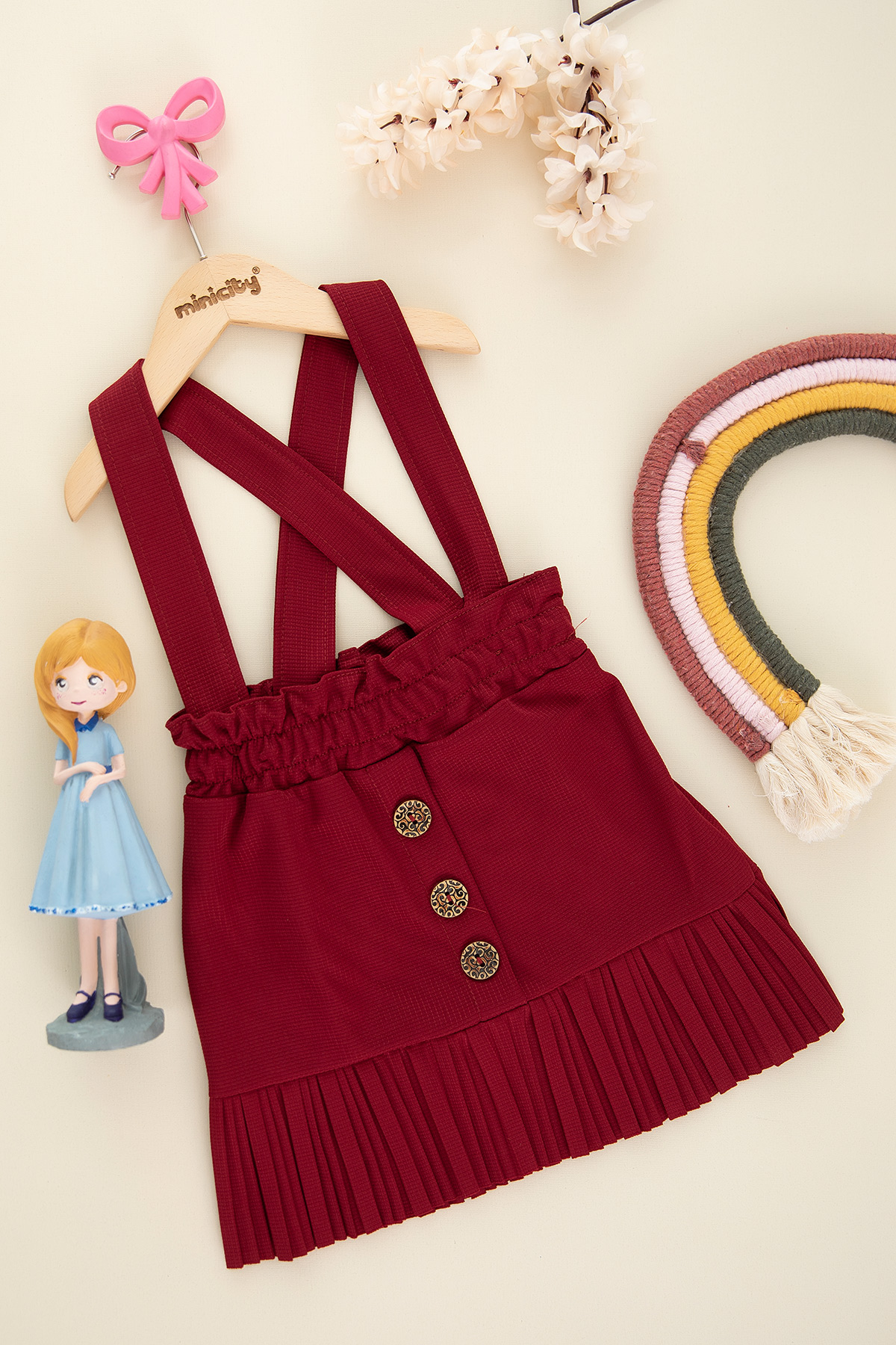 Kız Çocuk Düğmeli Eteği Pileli Salopet Etek - 107 (3-7 Yaş)