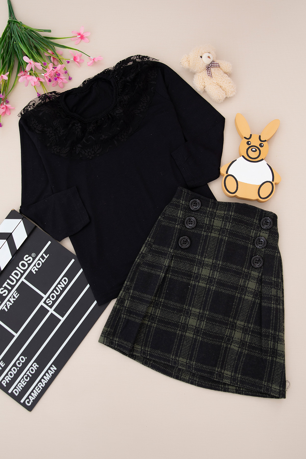Kız Çocuk Düğmeli Etekli Takım (3-10 Yaş)