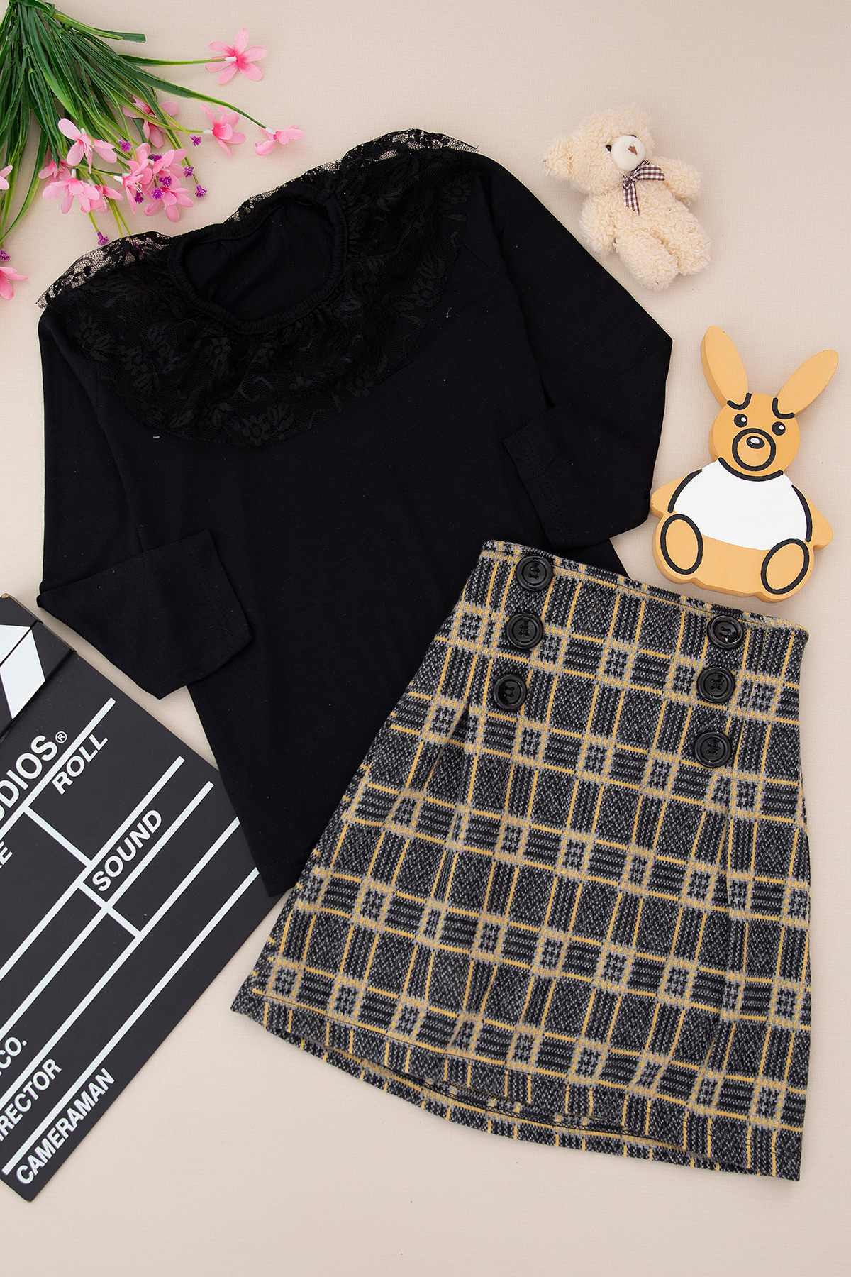 Kız Çocuk Düğmeli Etekli Takım (3-10 Yaş)