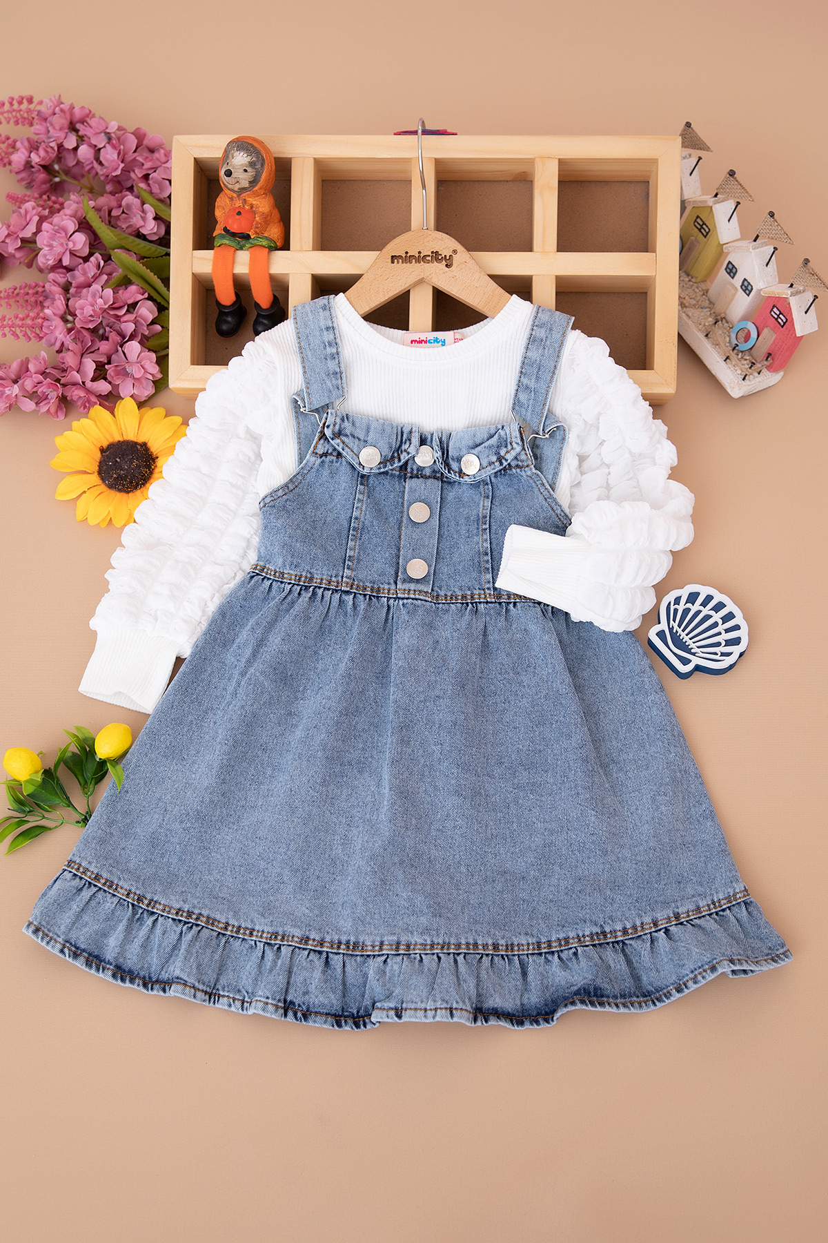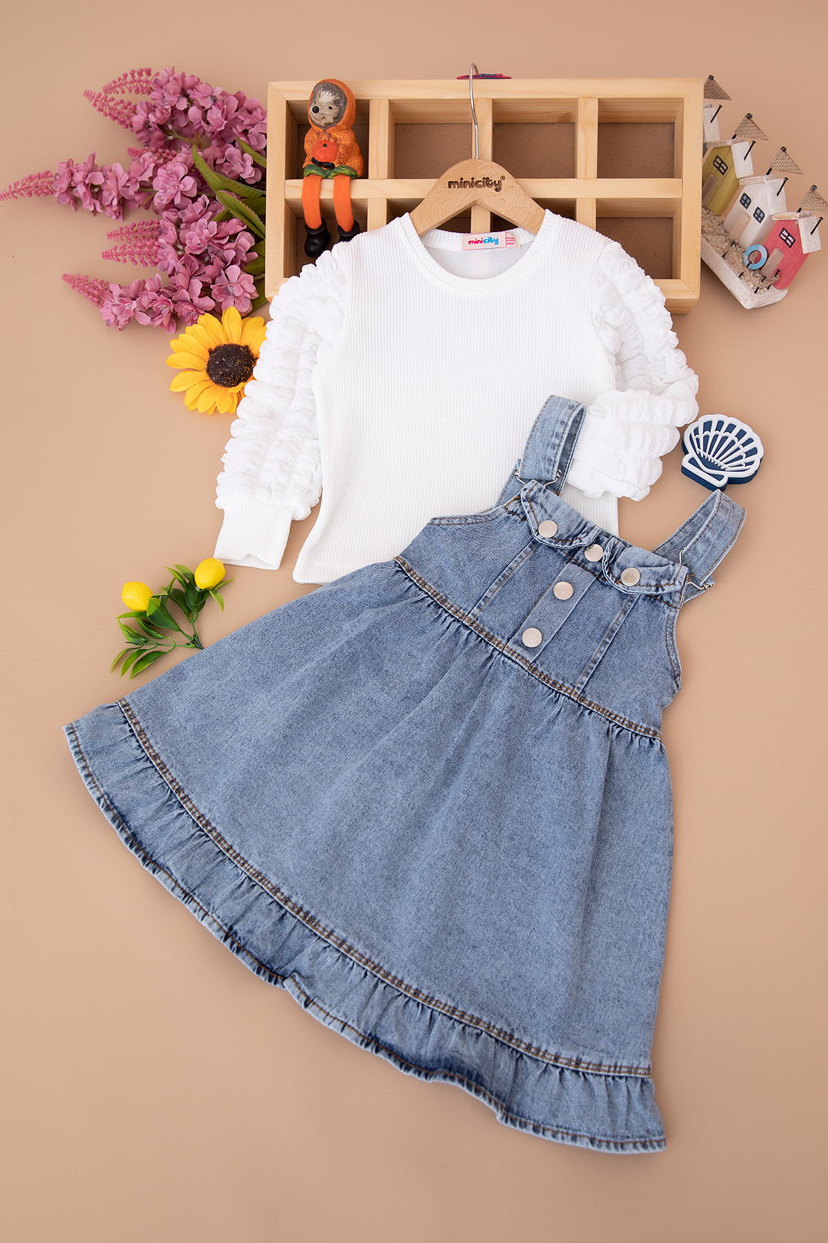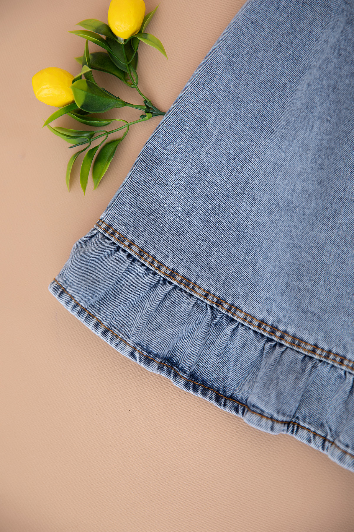 Kız Çocuk Düğmeli Fırfırlı Badili Kot Jile - 2610 (3-7 Yaş)