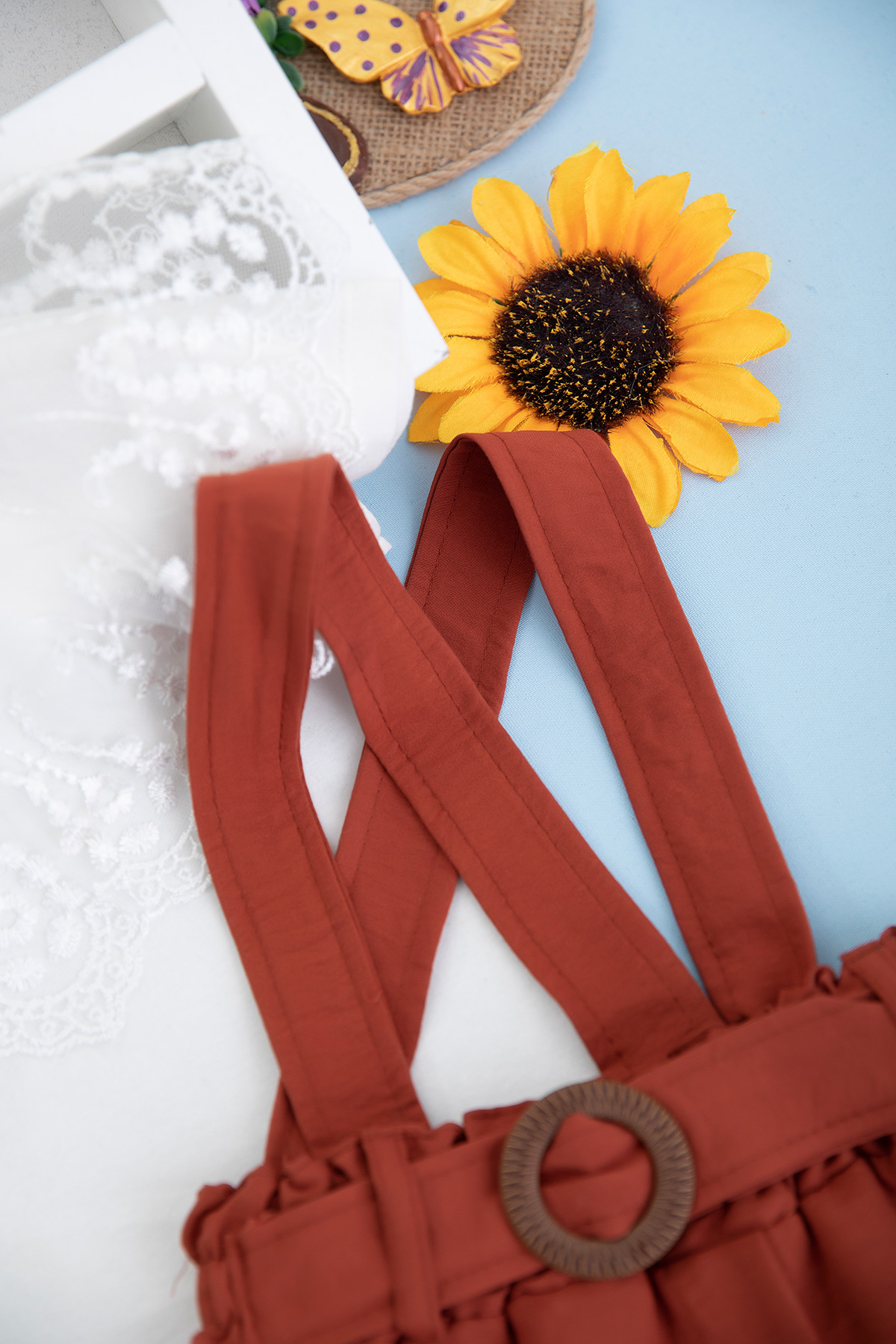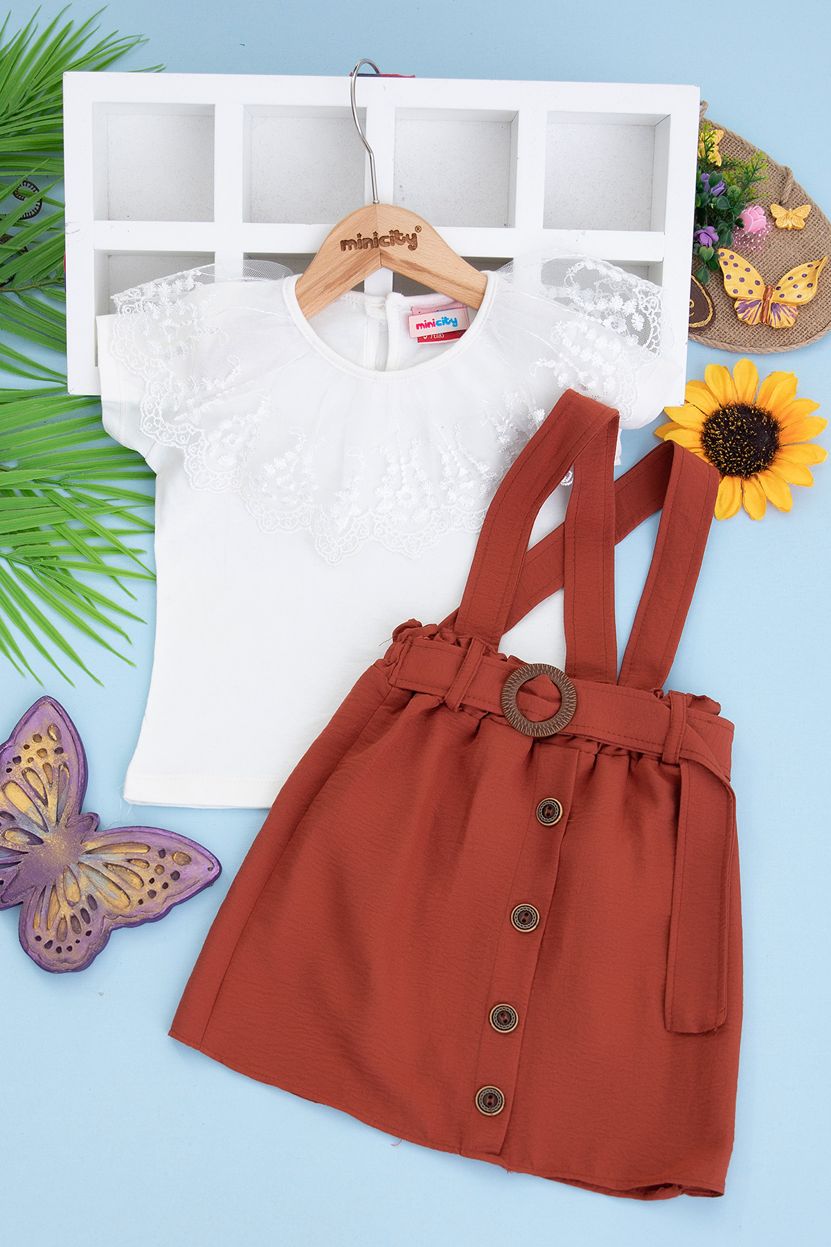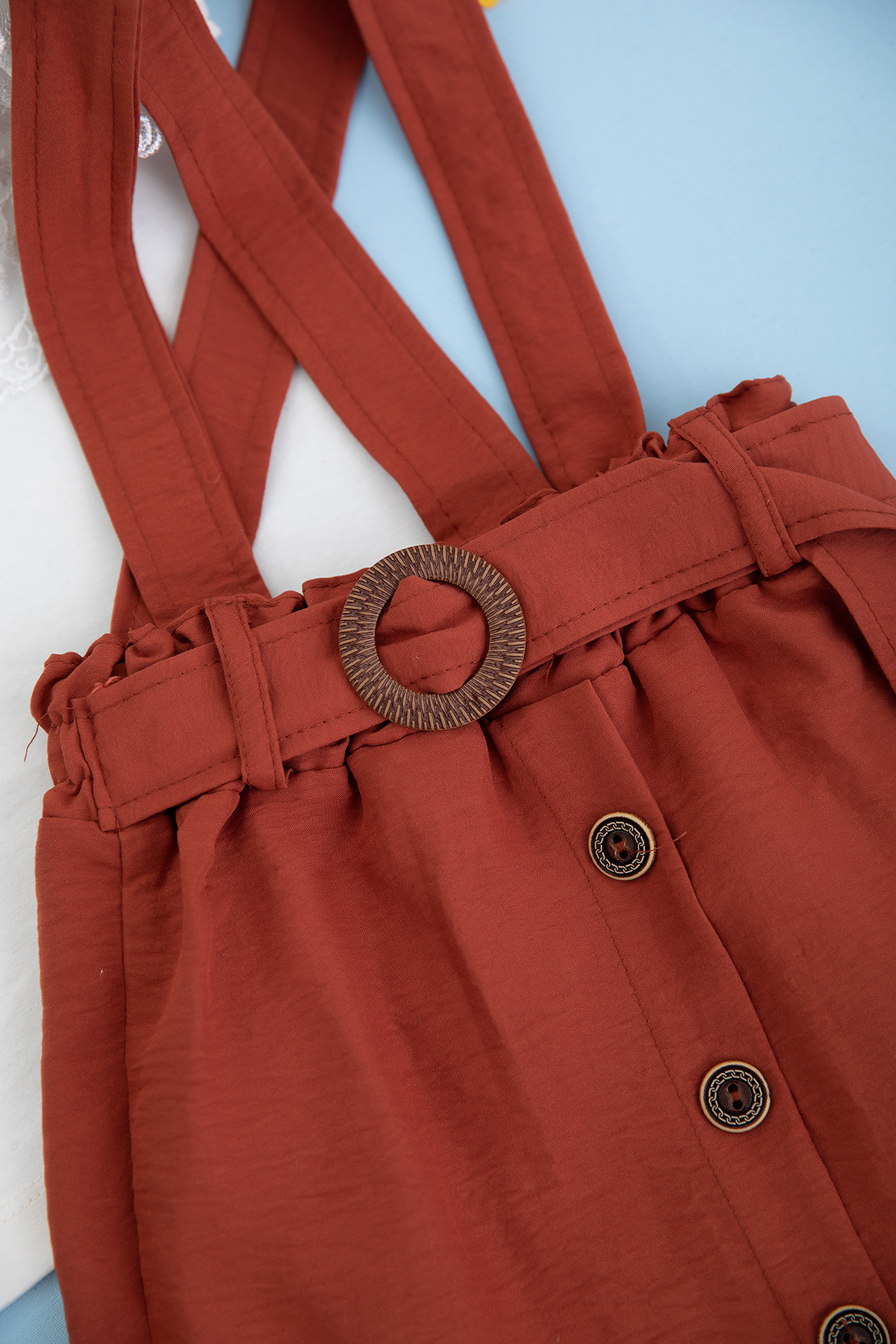 Kız Çocuk Düğmeli Kemerli Badi Etek Takım - 0103 (3-7 Yaş)