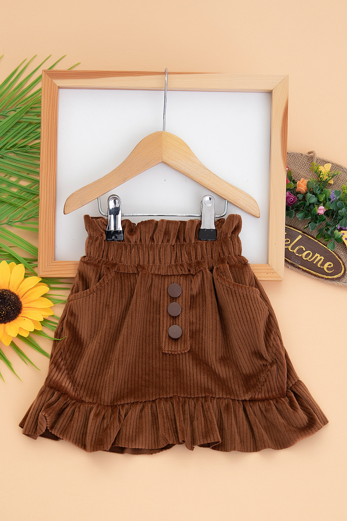 Kız Çocuk Düğmeli Lycrlı Kadife Etek - 26909 (1-5 Yaş)