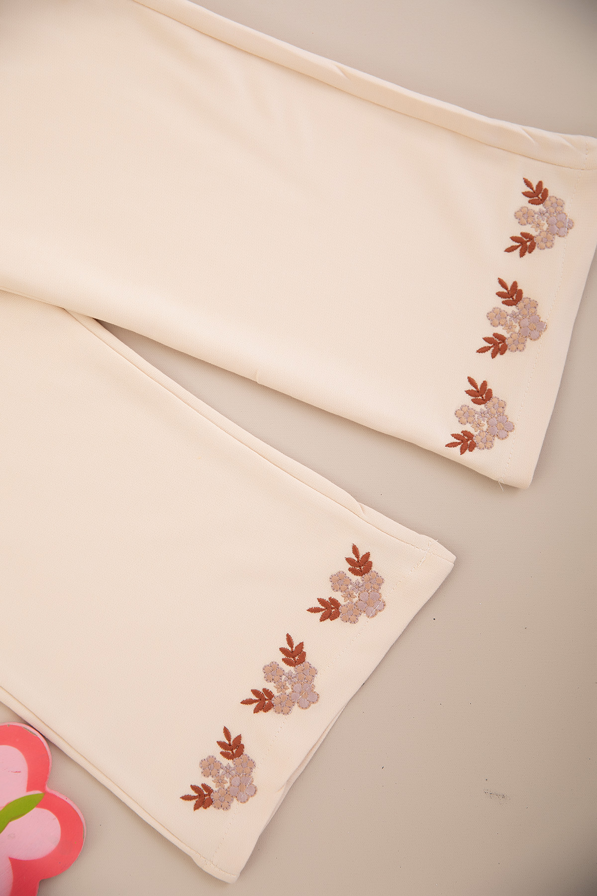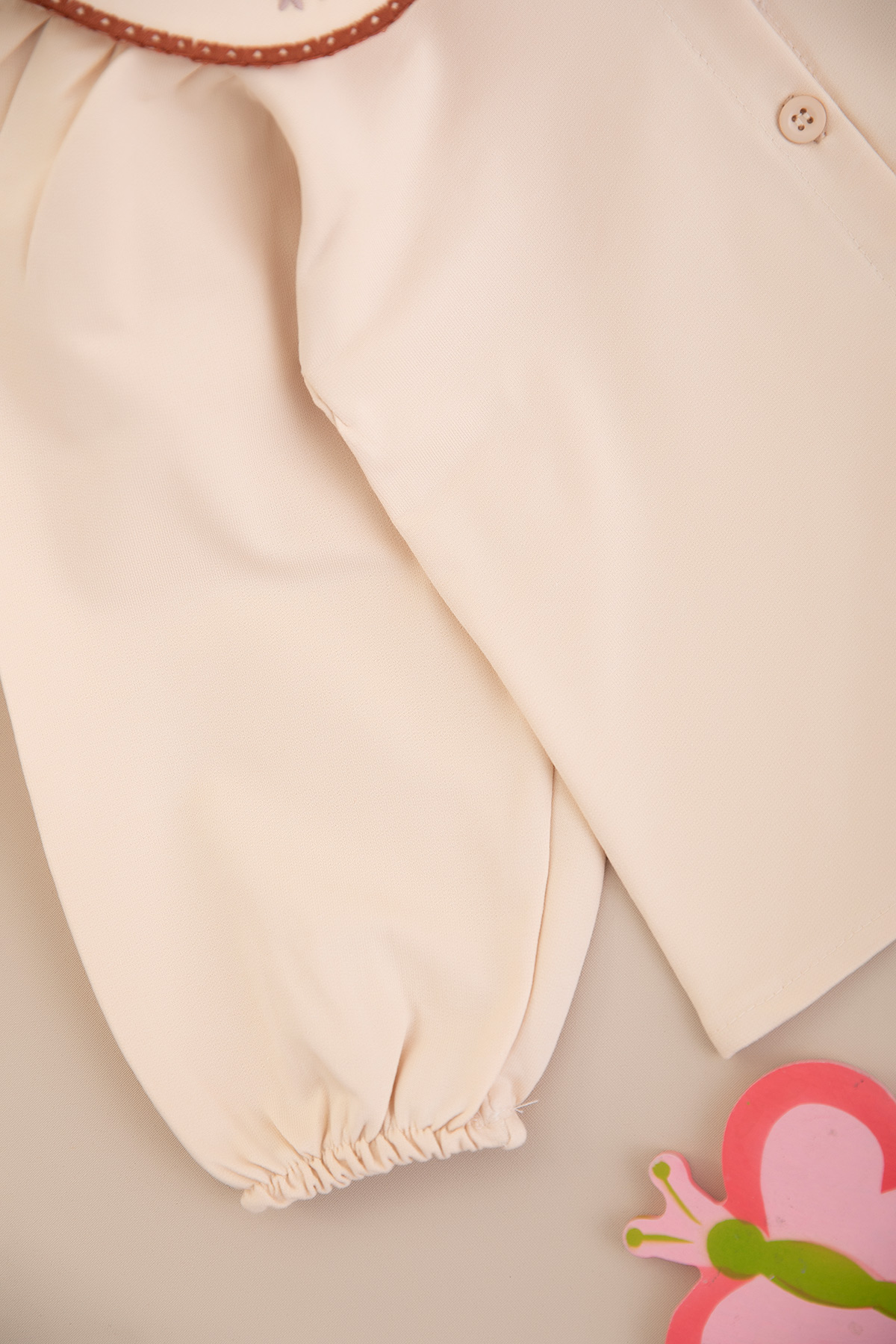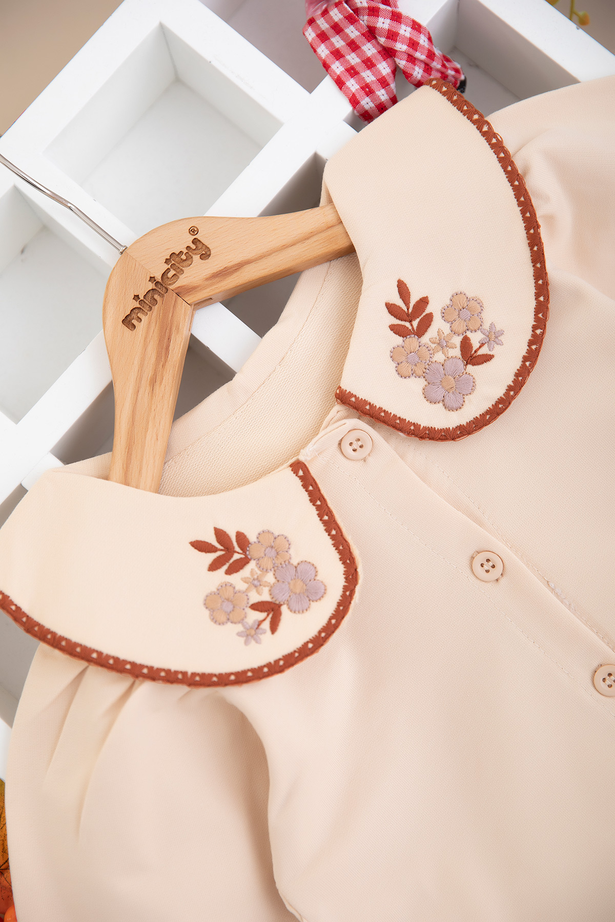 Kız Çocuk Düğmeli Yaka Çiçek Nakışlı Takım - 2940 (3-7 Yaş)