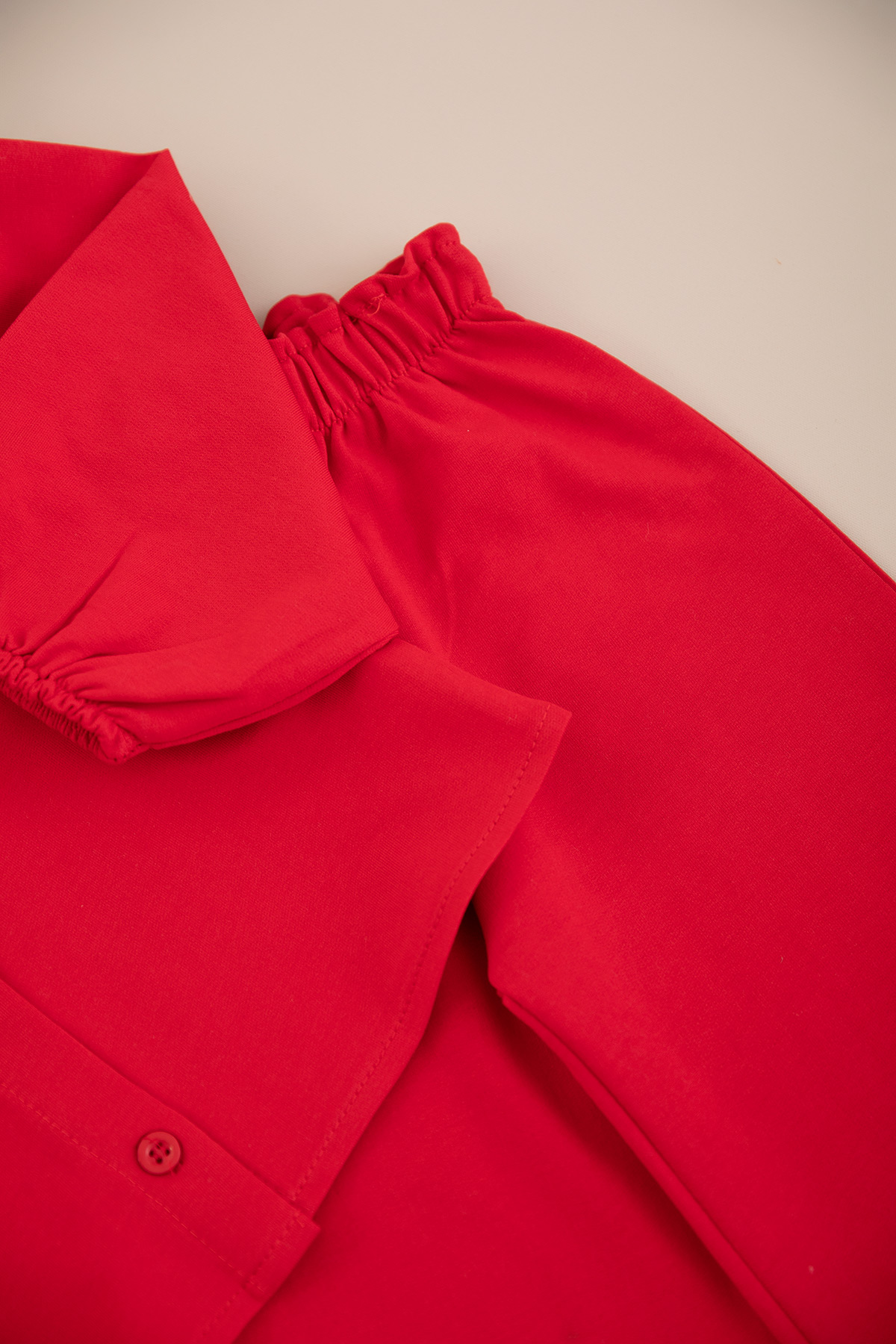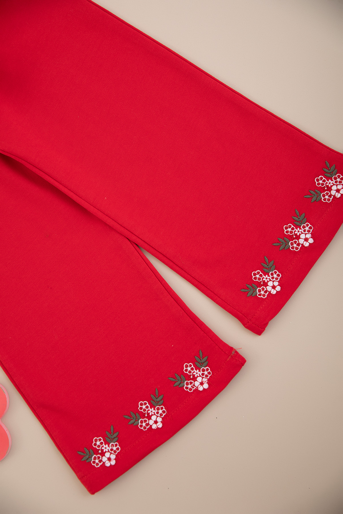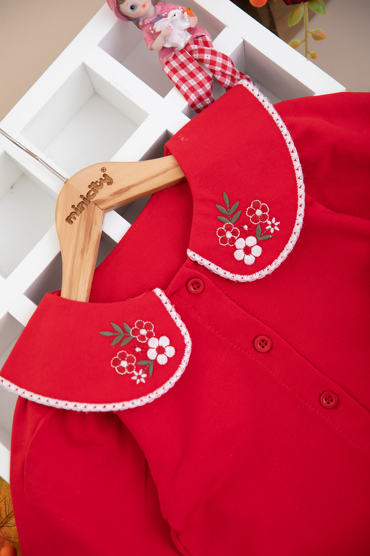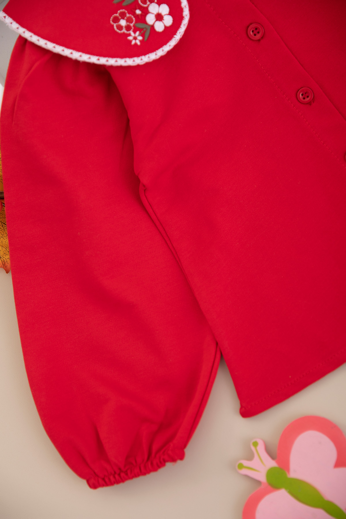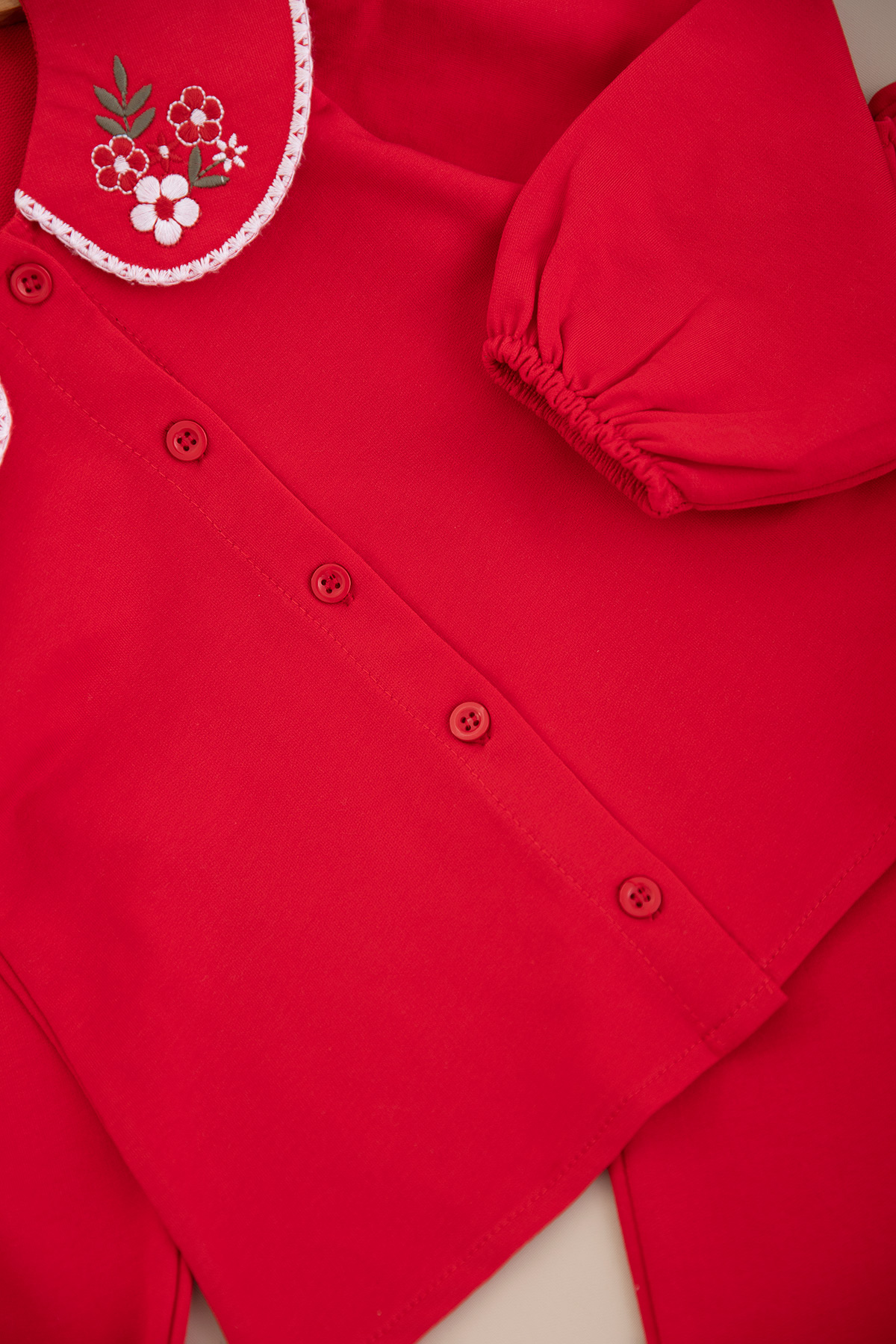 Kız Çocuk Düğmeli Yaka Çiçek Nakışlı Takım - 2940 (3-7 Yaş)