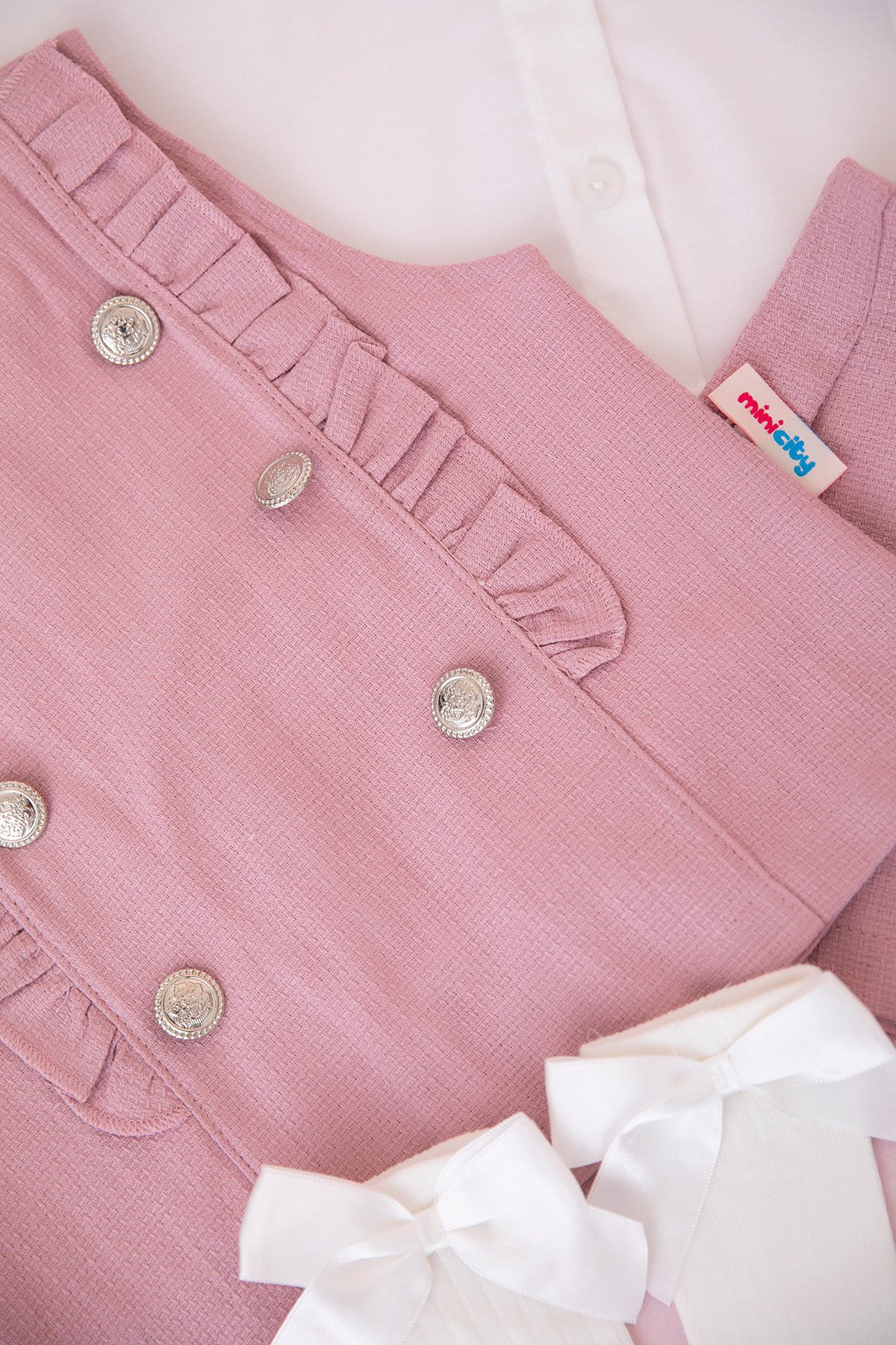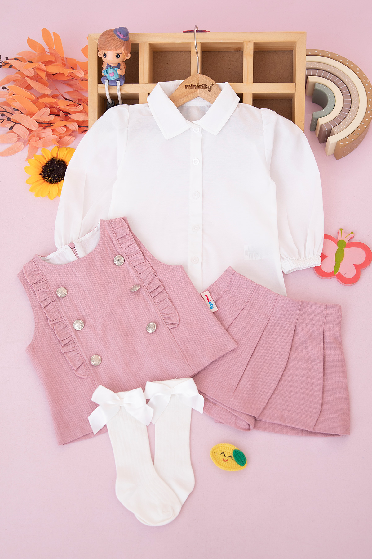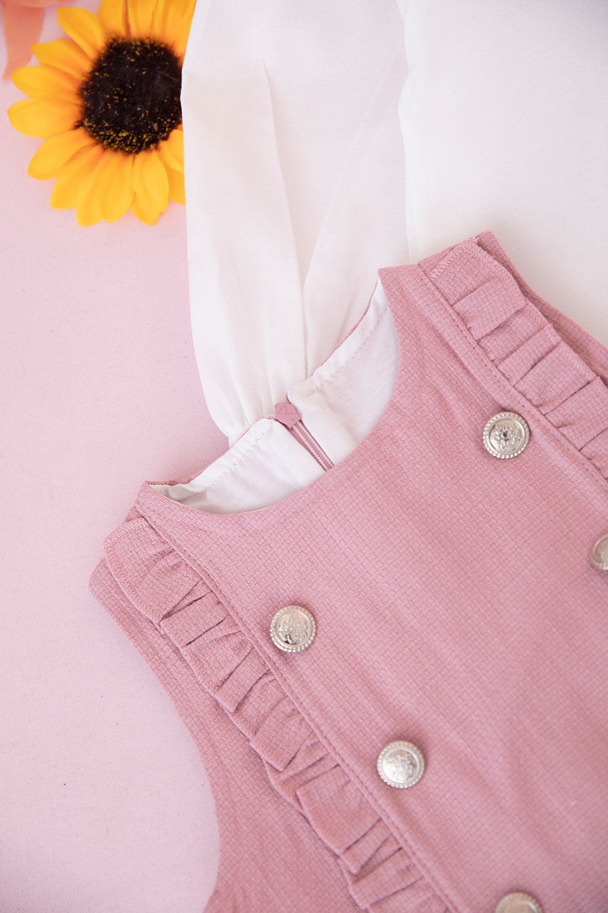Kız Çocuk Düğmeli Yelekli Etekli Takım - 1120 (2-5 Yaş)