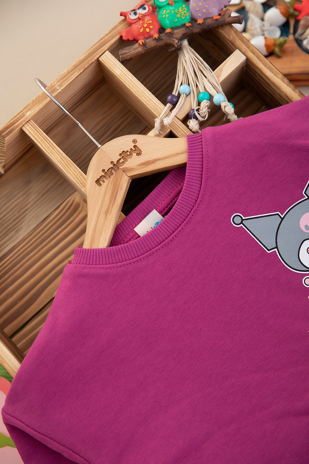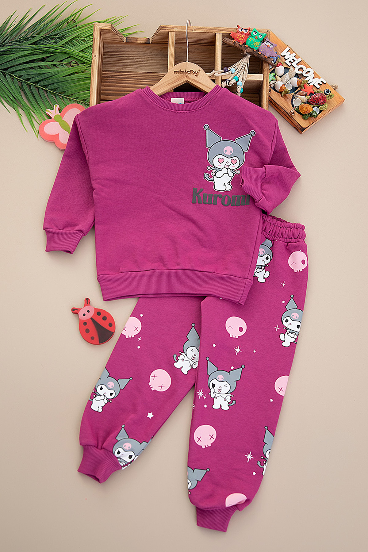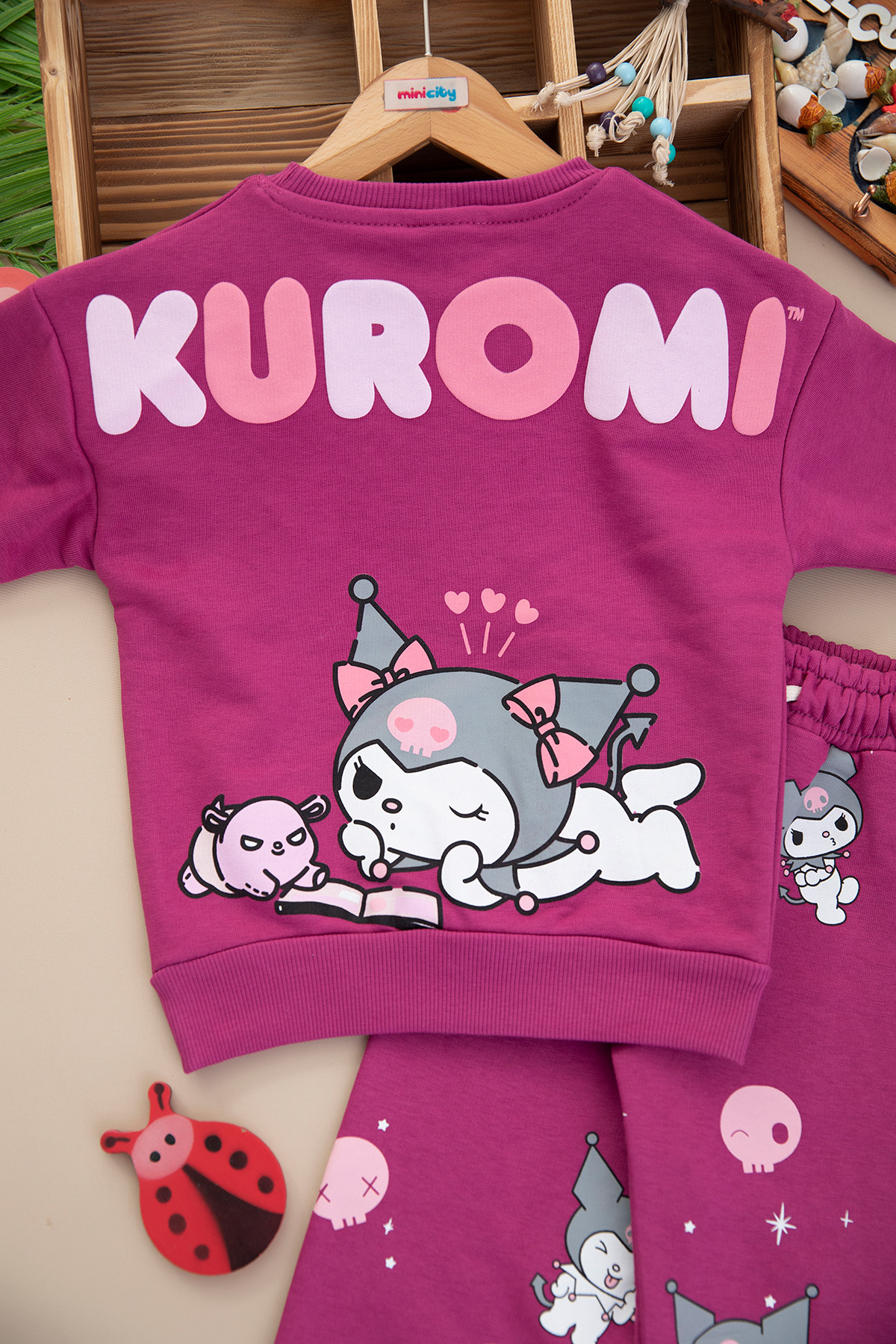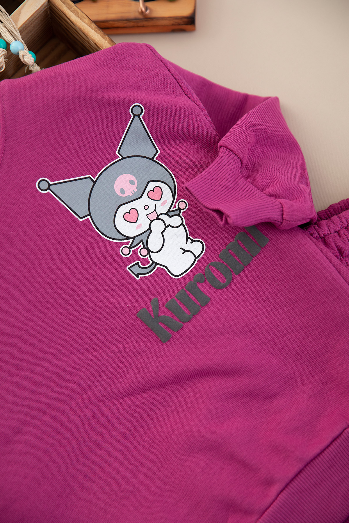 Kız Çocuk Düz Renkli Kuromi Baskılı Takım (4-10 Yaş)