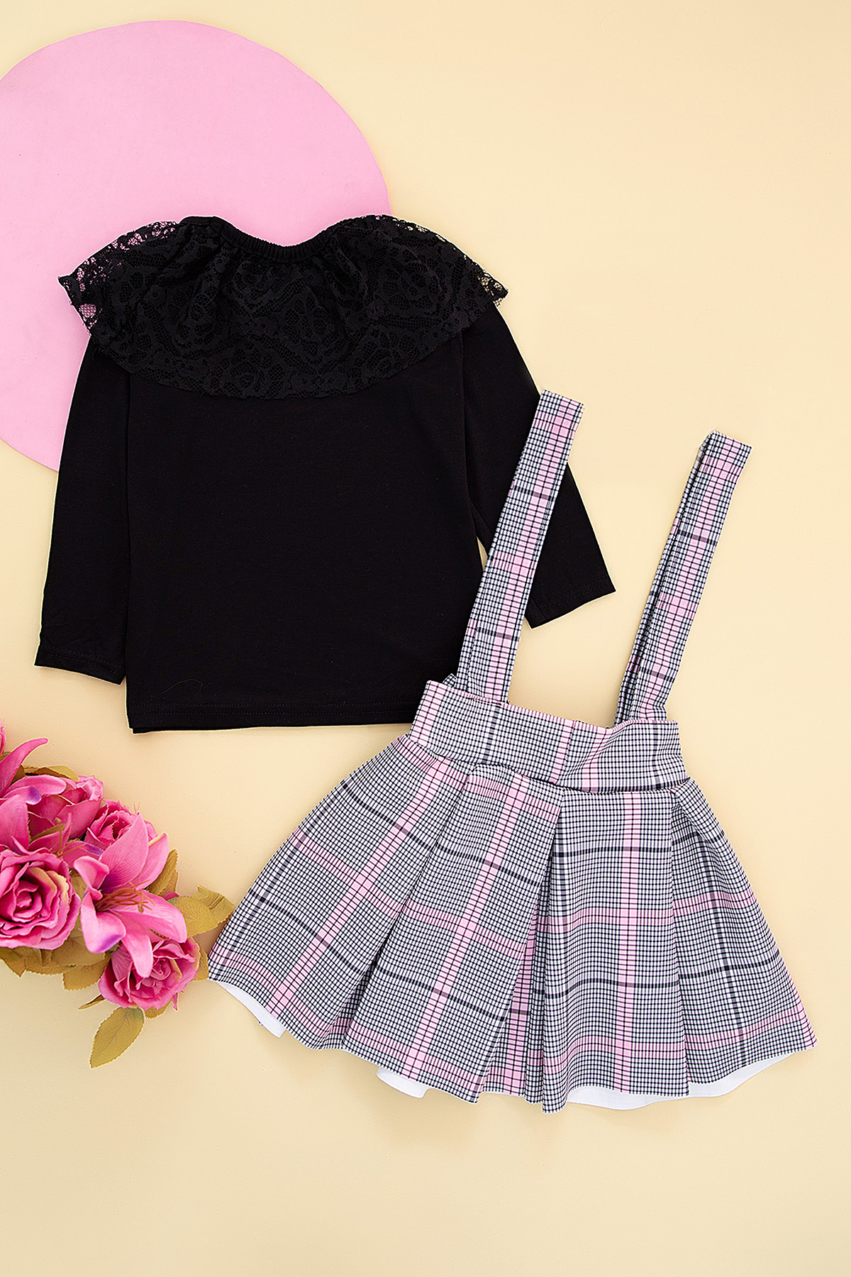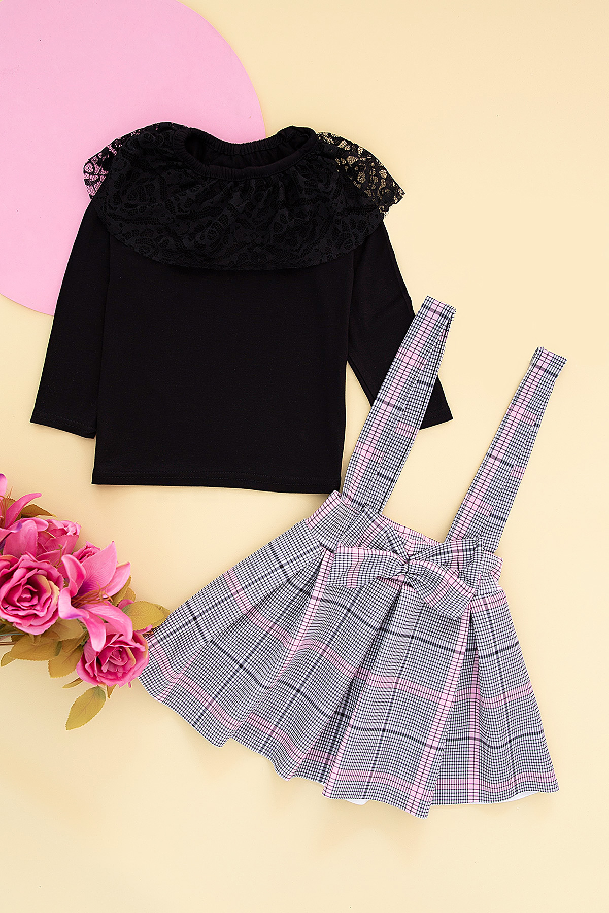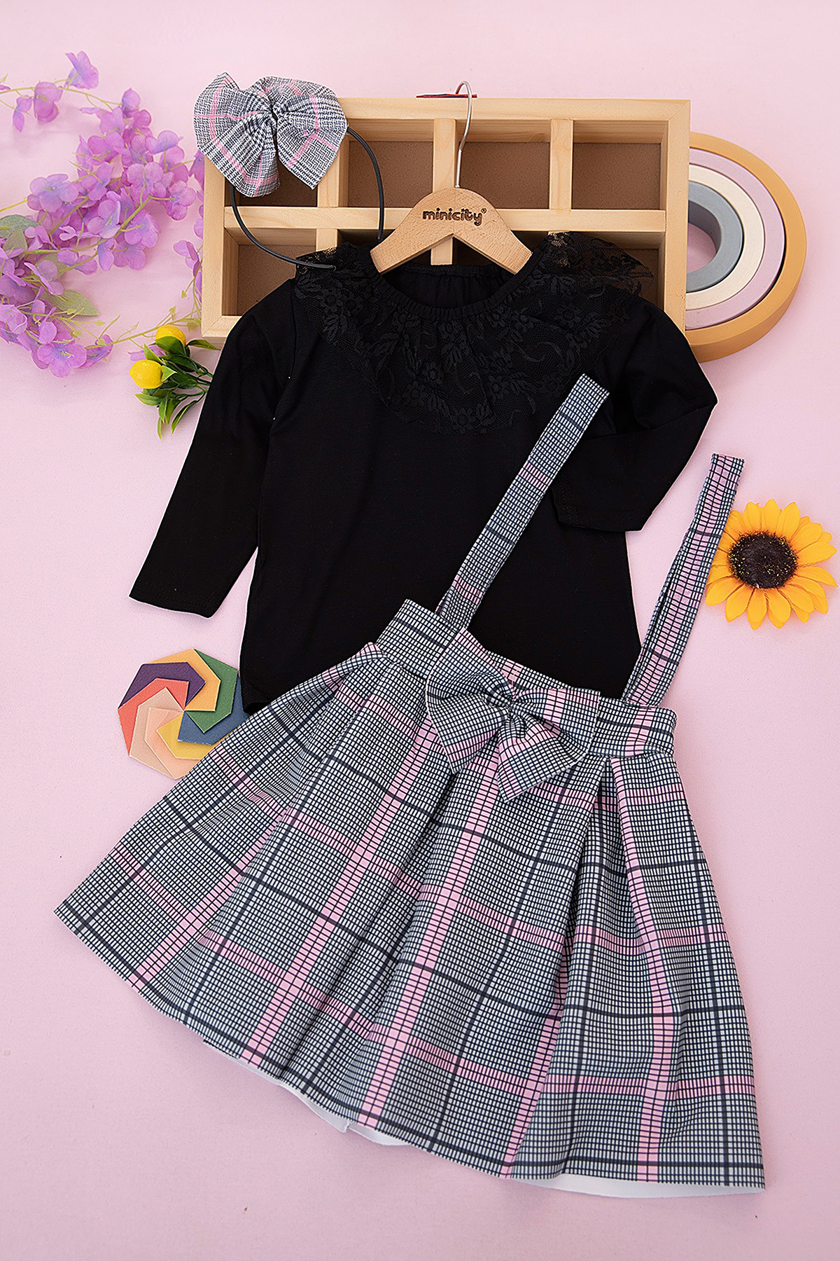 Kız Çocuk Ekose Askılı Etek Fistolu Badi Takım (3-10 Yaş)