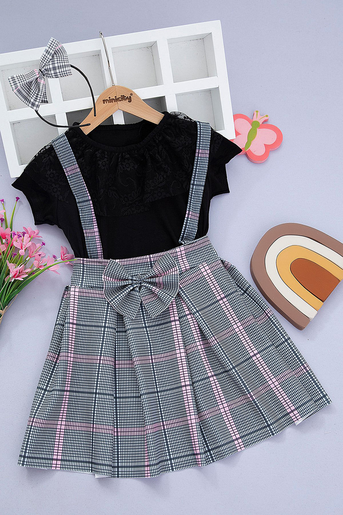 Kız Çocuk Ekose Etek Fistolu Badi Takım (3-10 Yaş)