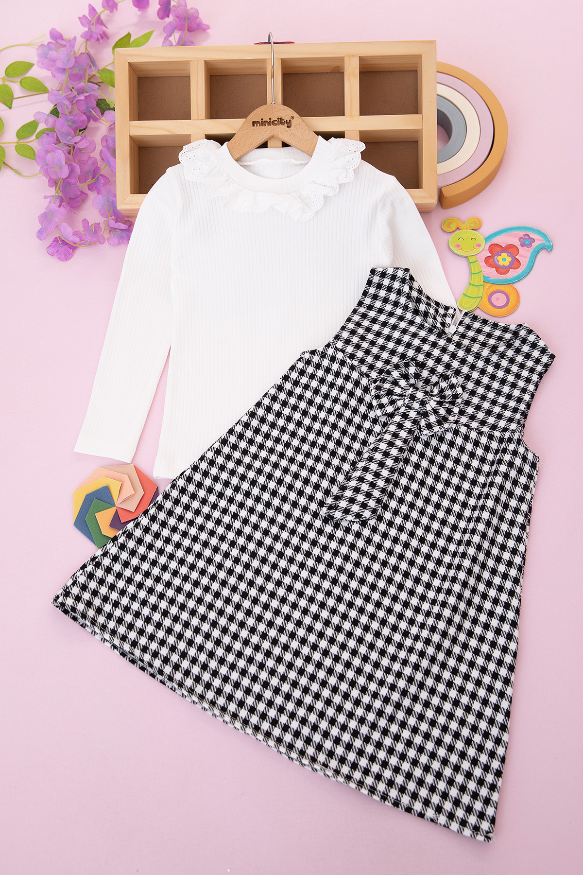 Kız Çocuk Ekose Fiyonklu Badili Elbise - 2030 (2-5 Yaş)