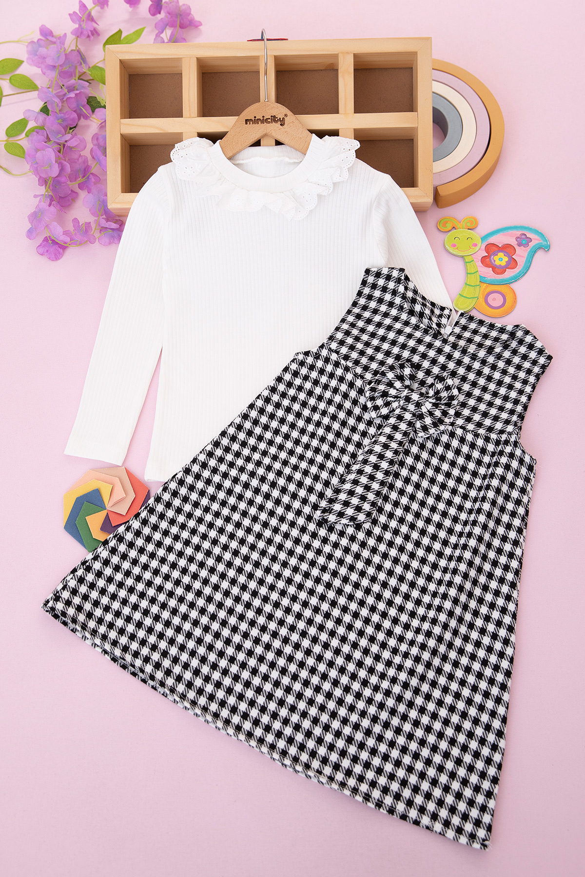 Kız Çocuk Ekose Fiyonklu Badili Elbise - 2040 (6-9 Yaş)