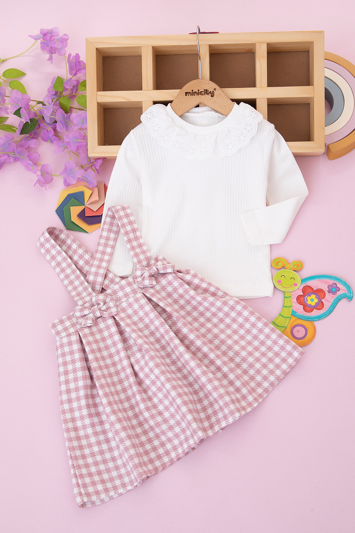 Kız Çocuk Ekose Pileli Takım - 2066 (1-4 Yaş)