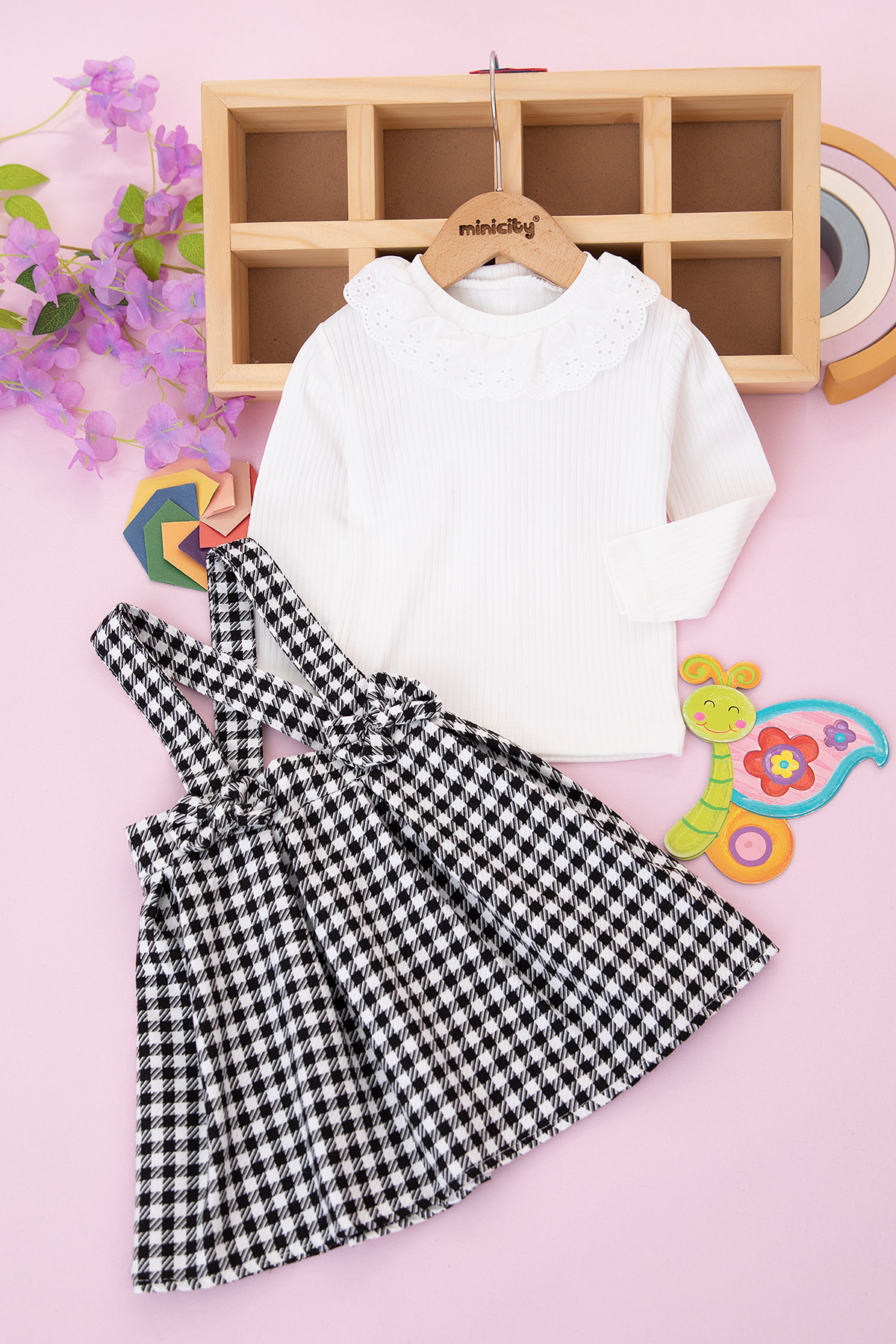 Kız Çocuk Ekose Pileli Takım - 2066 (1-4 Yaş)