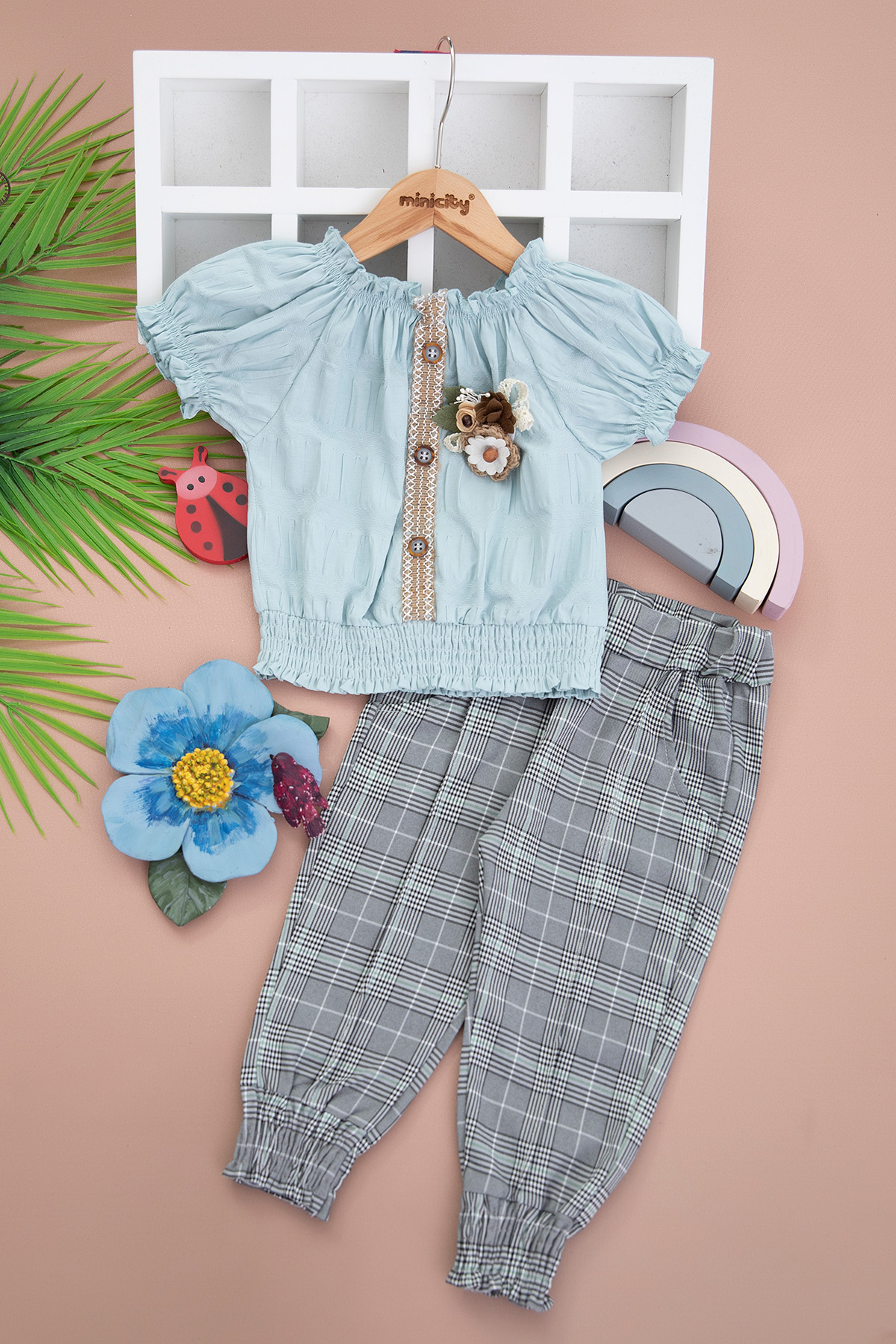 Kız Çocuk Ekose Şalvarlı Takım - 2074 (2-5 Yaş)