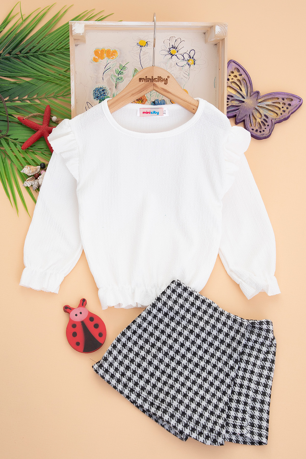 Kız Çocuk Ekose Şort Etek Takım (3-12 Yaş)