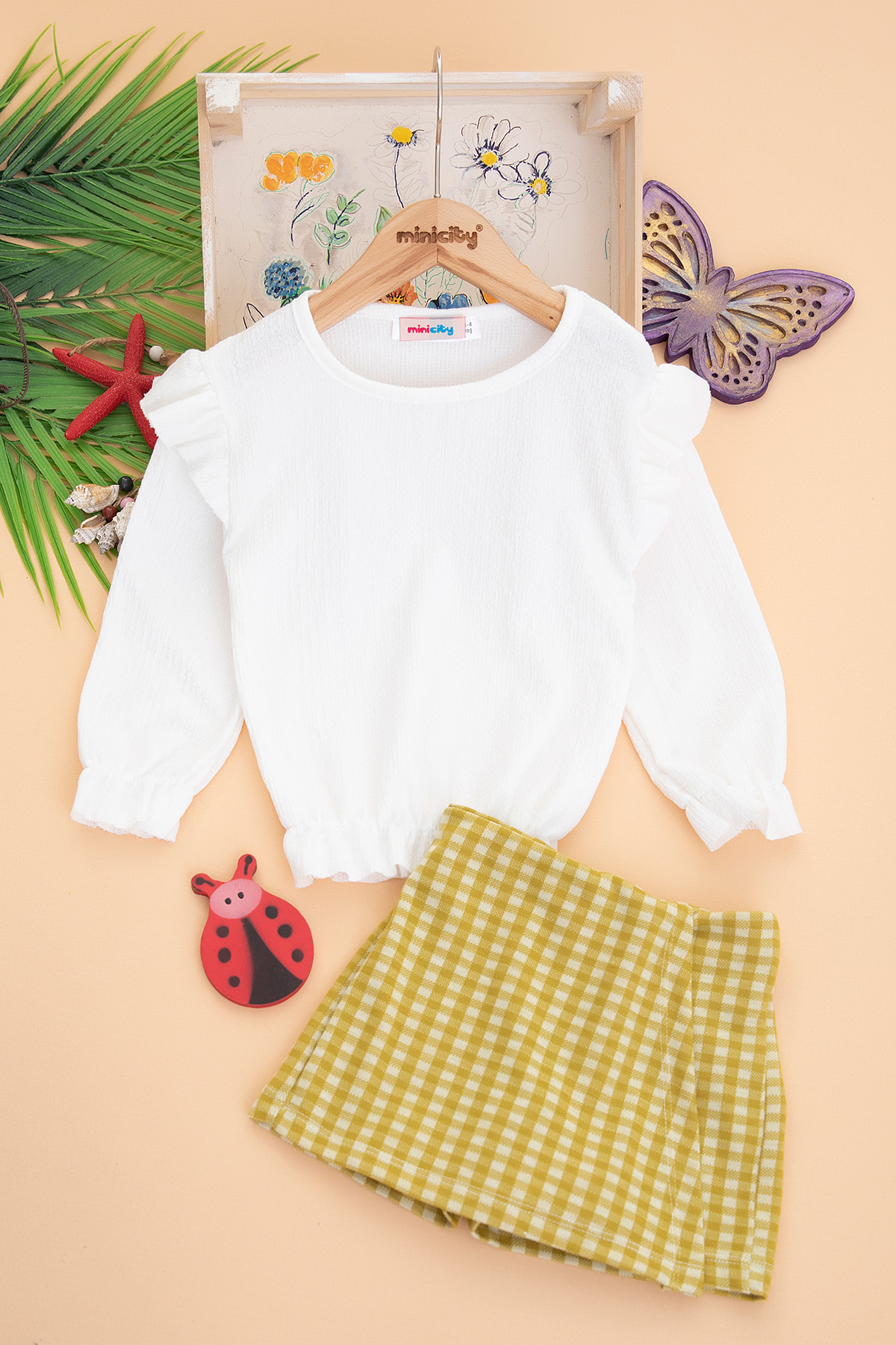 Kız Çocuk Ekose Şort Etek Takım (3-12 Yaş)