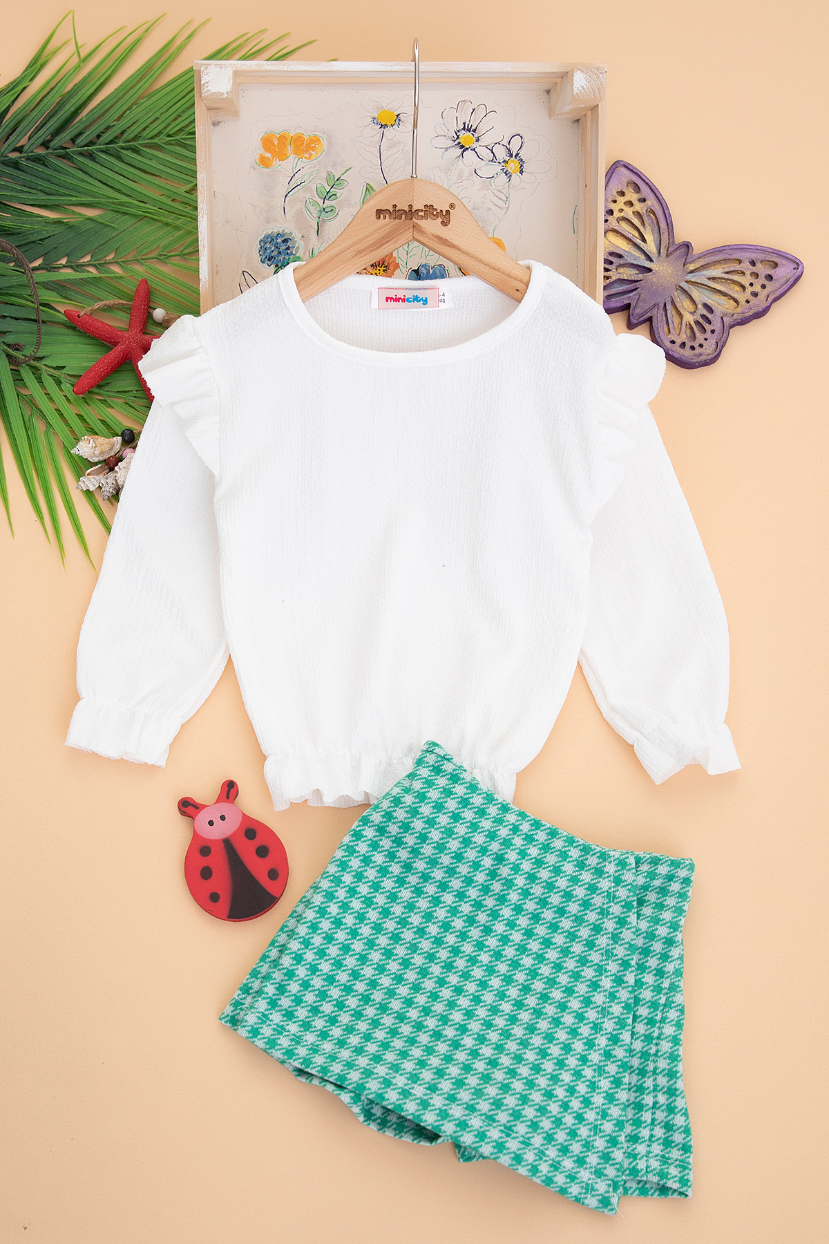Kız Çocuk Ekose Şort Etek Takım (3-12 Yaş)