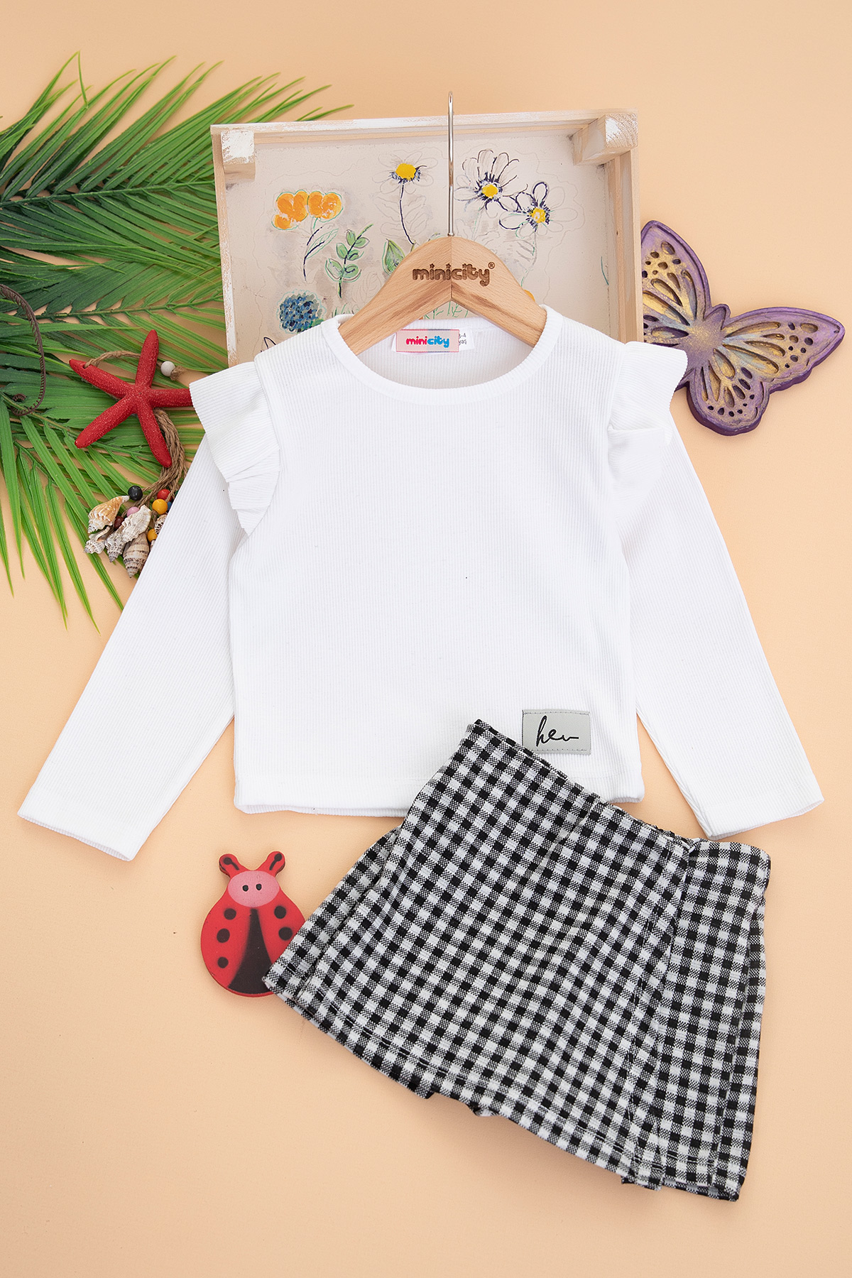 Kız Çocuk Ekose Şort Etek Takım (3-12 Yaş)
