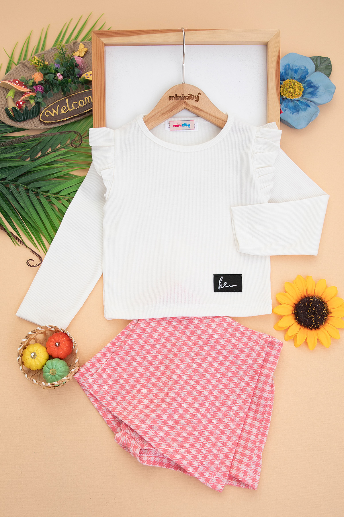 Kız Çocuk Ekose Şort Etek Takım (3-12 Yaş)