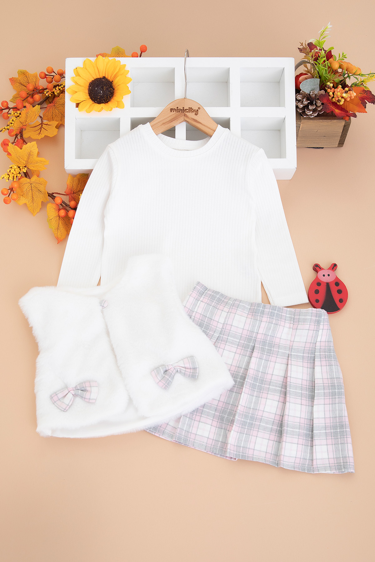 Kız Çocuk Ekose Şort Etekli Peluşlu Takım - 5150 (2-5 Yaş)