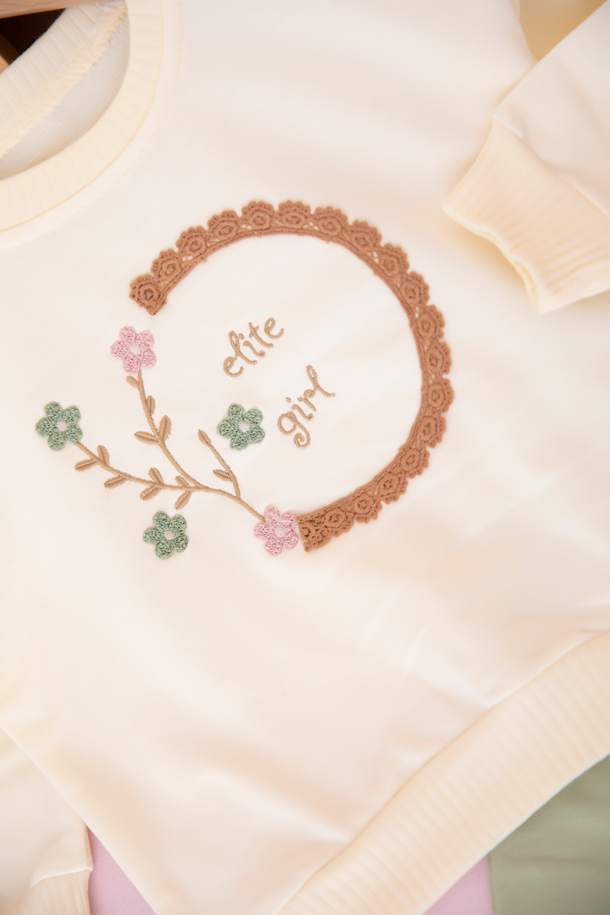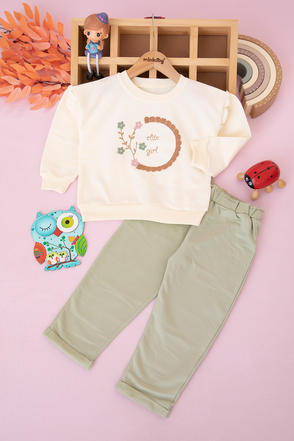 Kız Çocuk Elite Çiçek Nakışlı Takım - 3046 (2-6 Yaş)