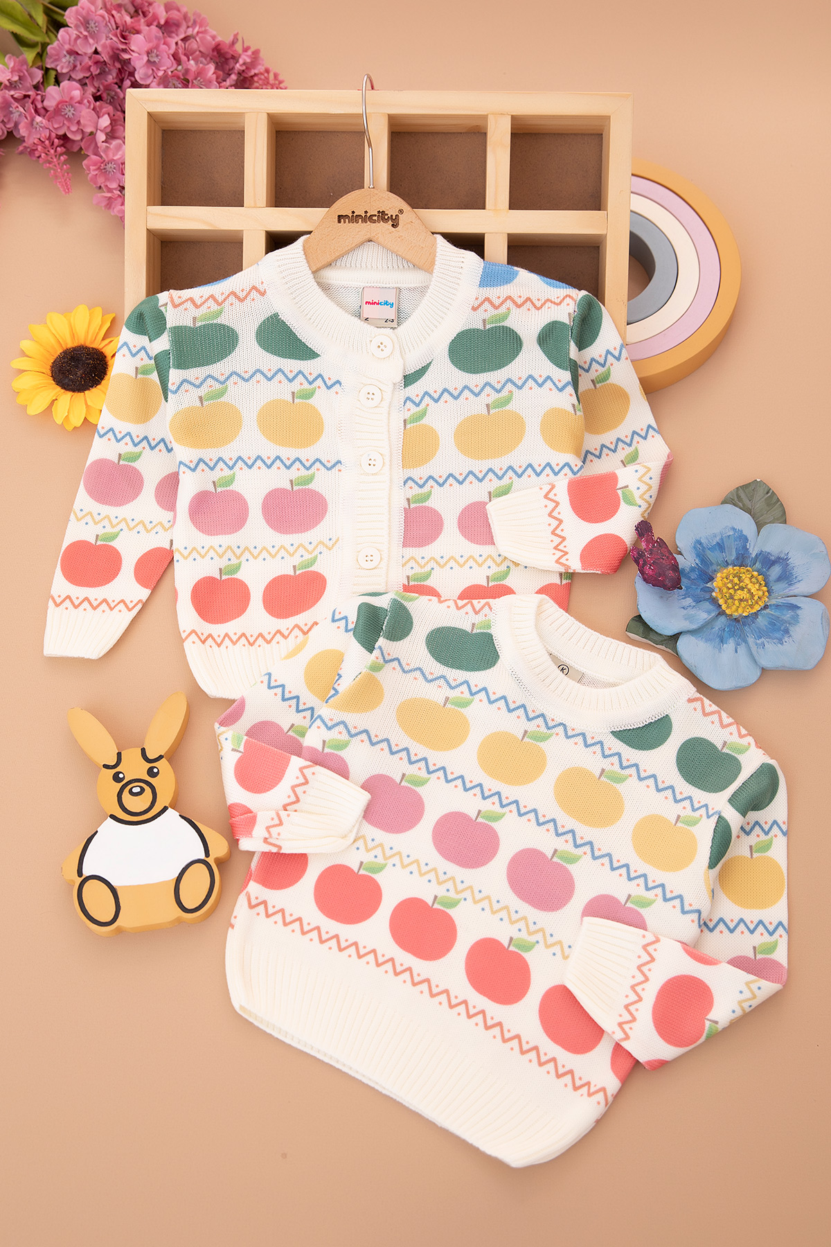 Kız Çocuk Elma Baskılı İkili Takım