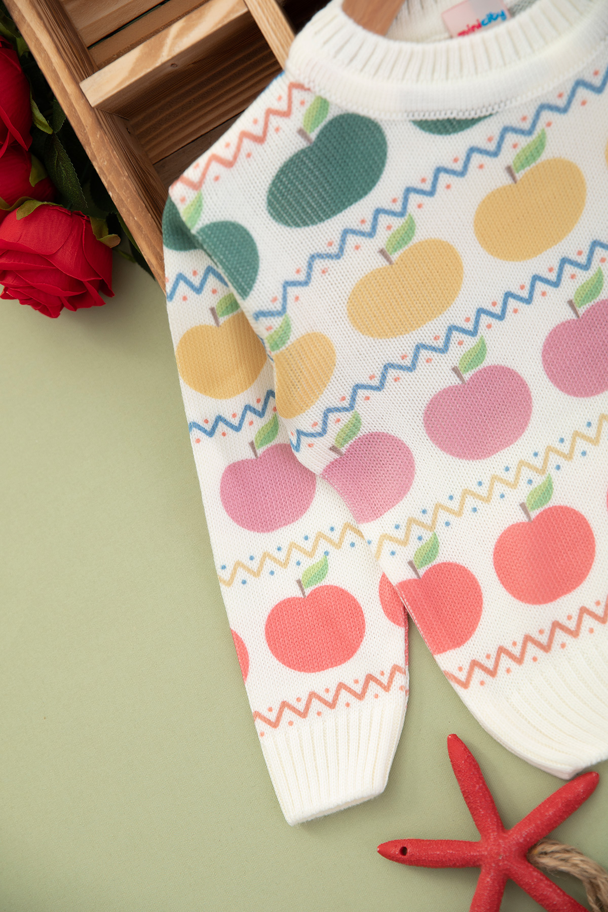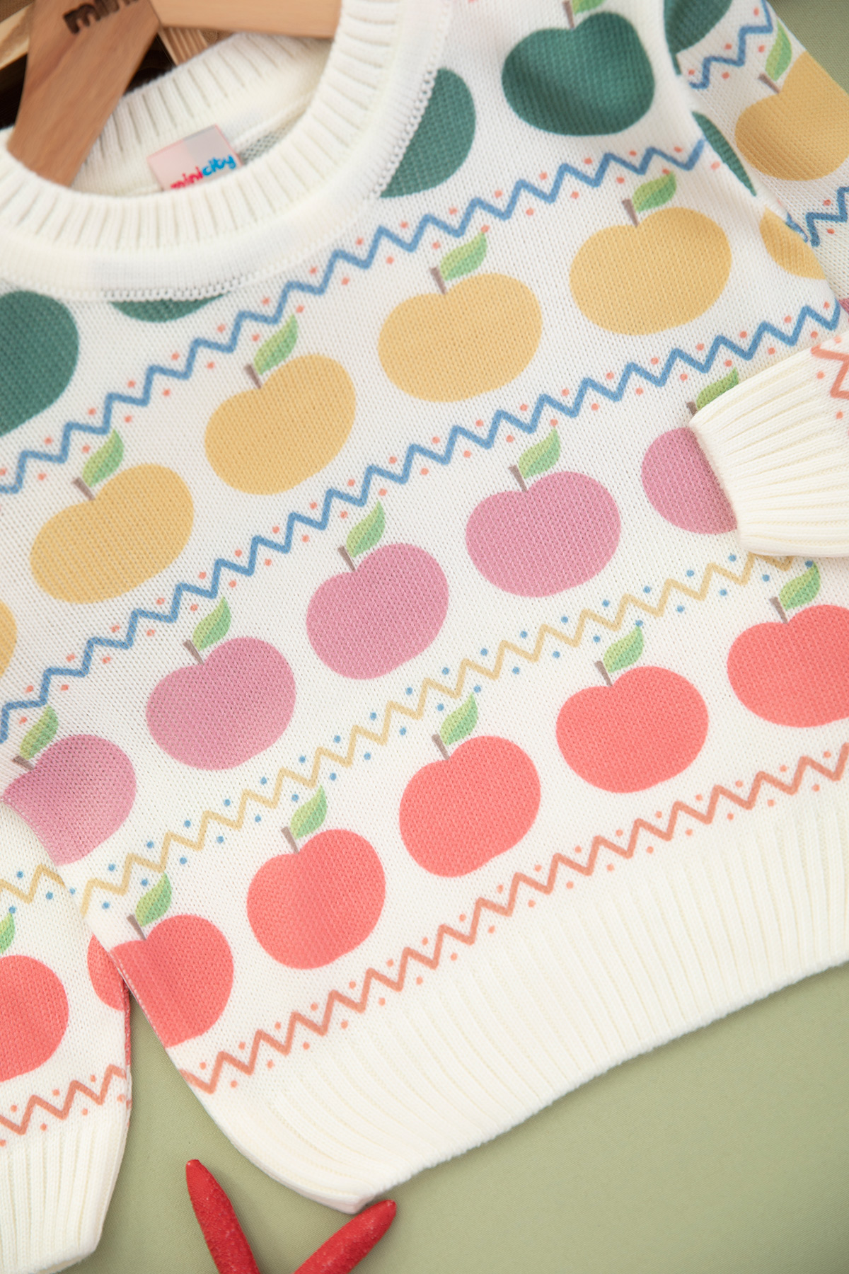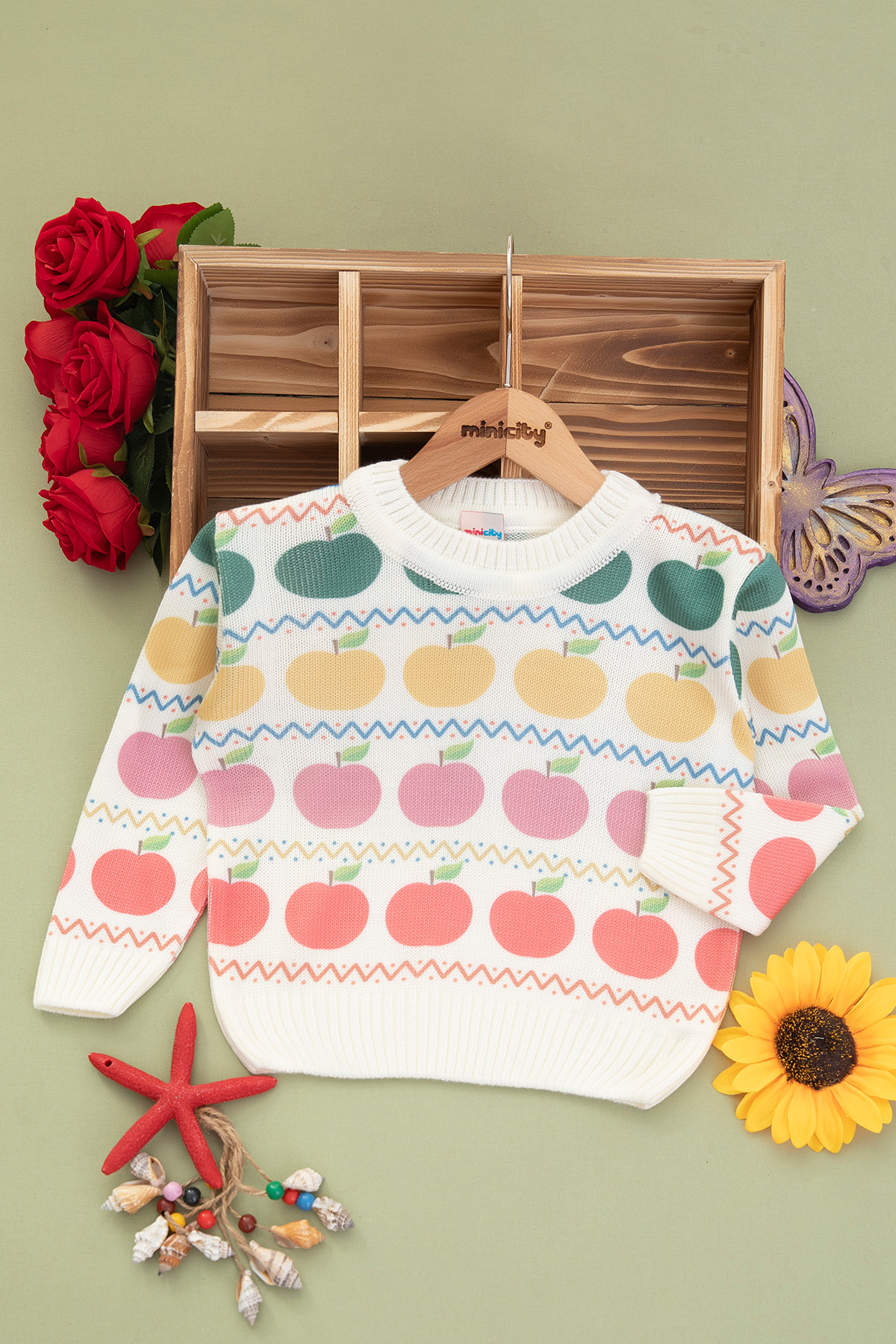 Kız Çocuk Elma Baskılı O Yaka Kazak (2-8 Yaş)