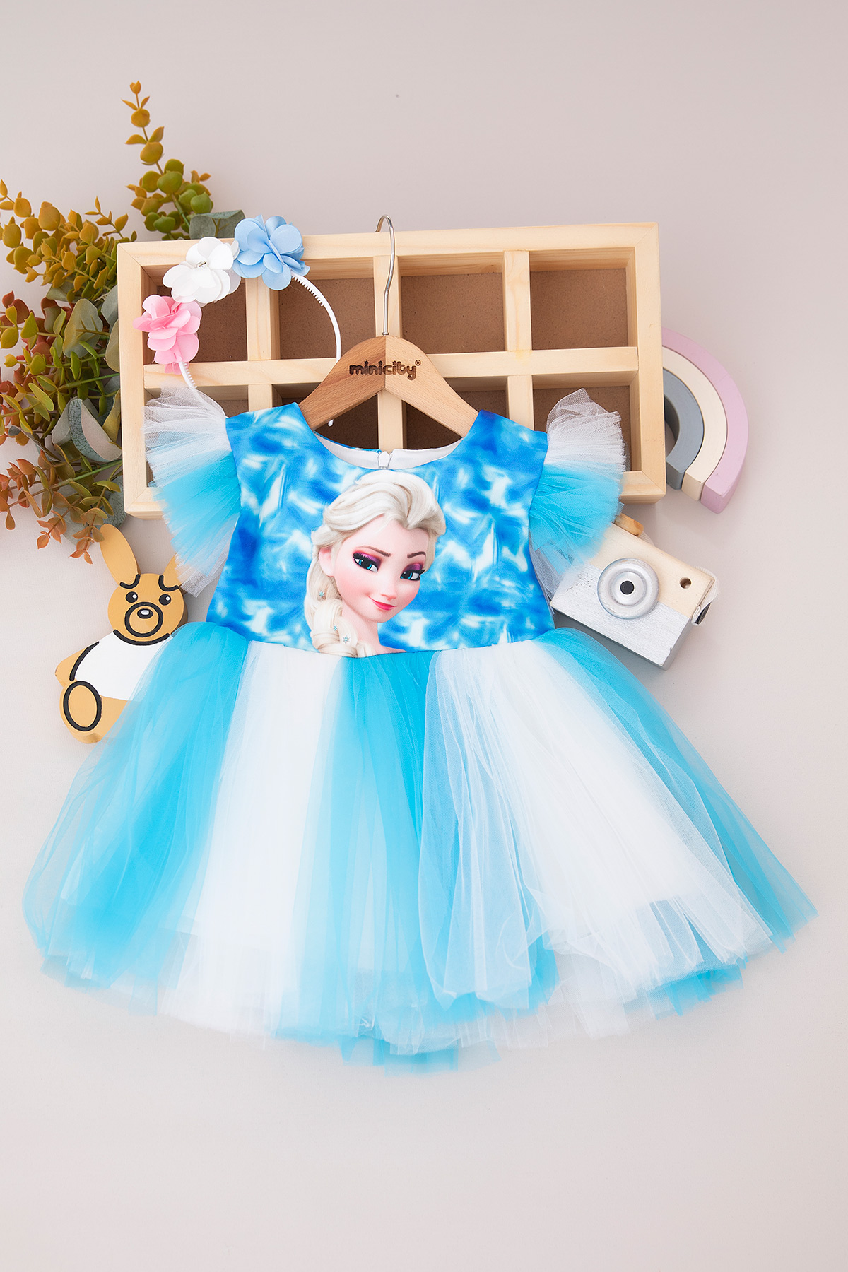 Kız Çocuk Elsa Baskılı Tüllü Elbise - 813 (1-4 Yaş)