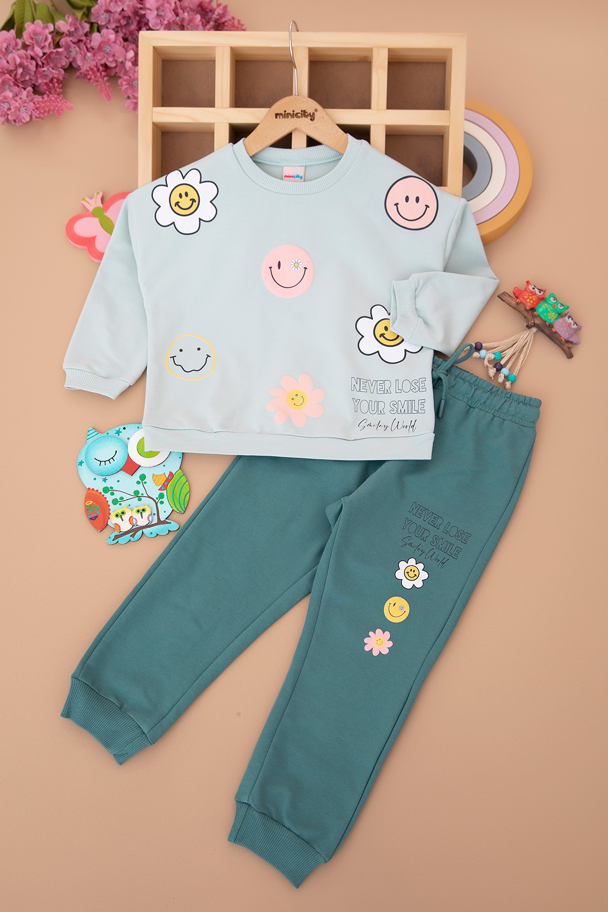 Kız Çocuk Emoji Baskılı Takım - 9081 (3-7 Yaş)