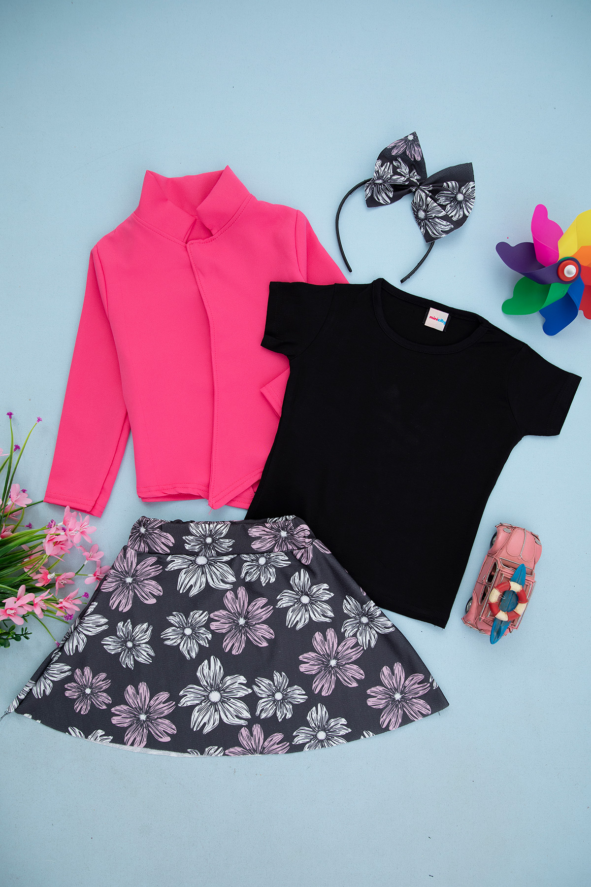 Kız Çocuk Eteği Çiçekli Renkli Ceketli Takım (3-10 Yaş)
