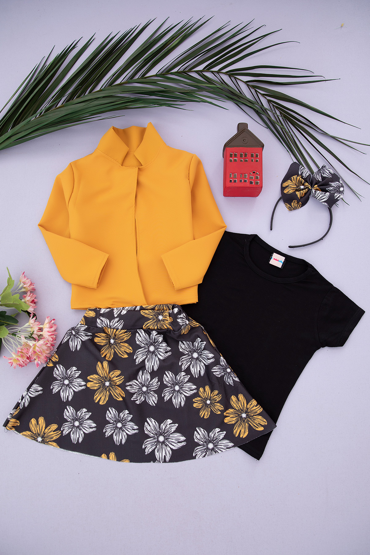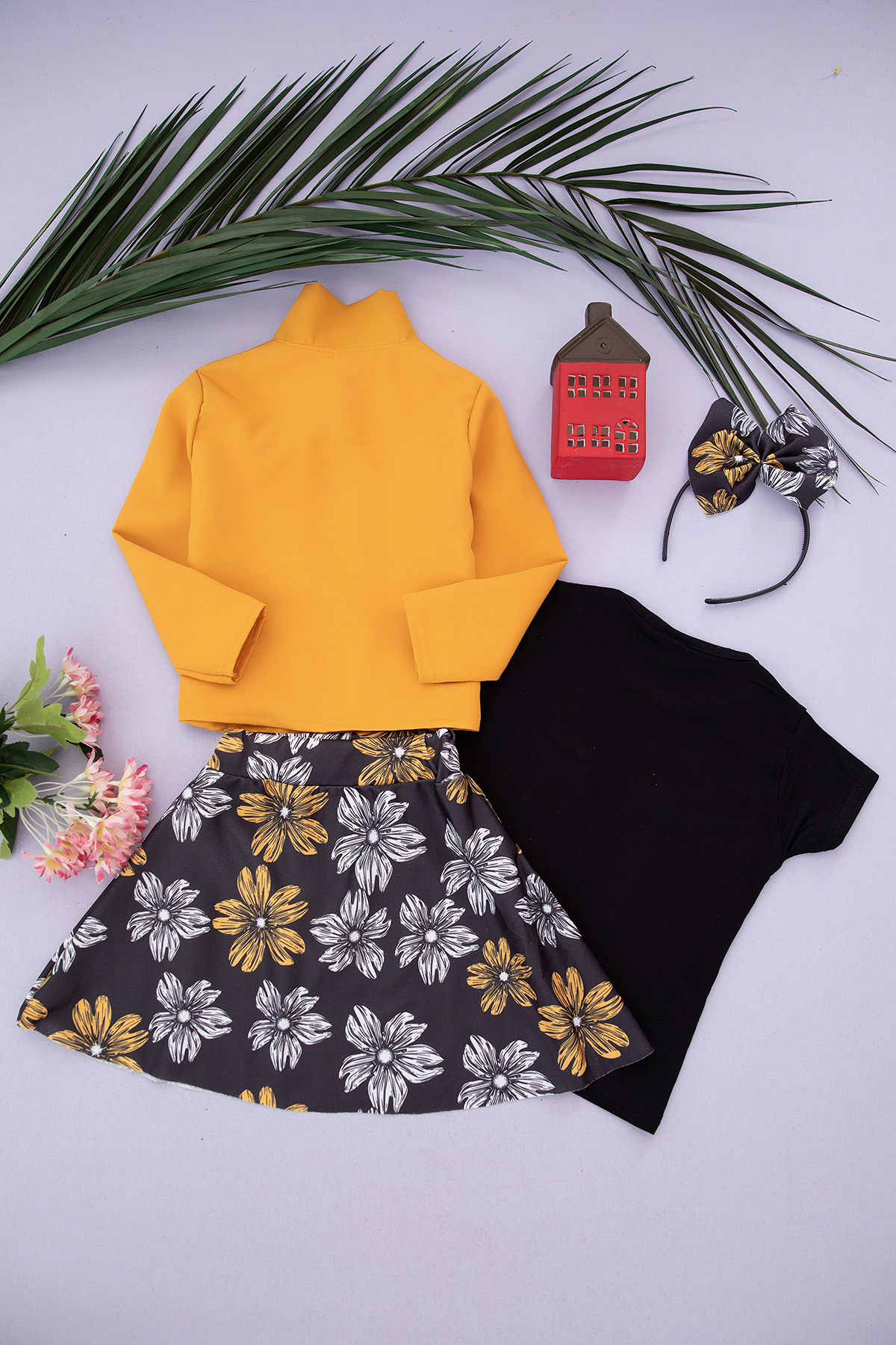 Kız Çocuk Eteği Çiçekli Renkli Ceketli Takım (3-10 Yaş)