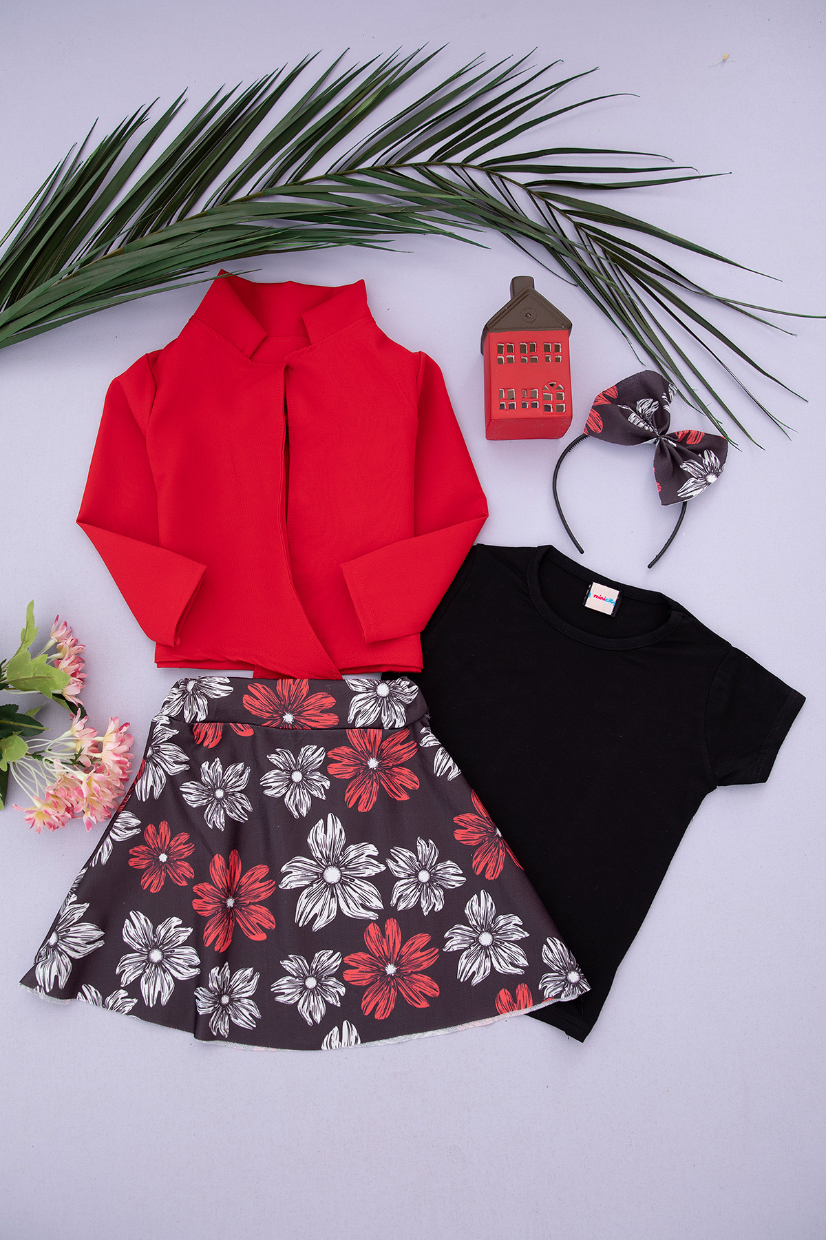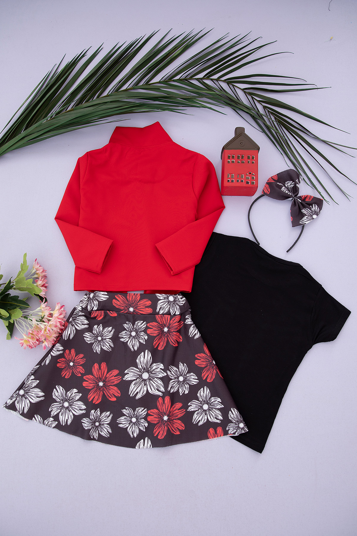 Kız Çocuk Eteği Çiçekli Renkli Ceketli Takım (3-10 Yaş)