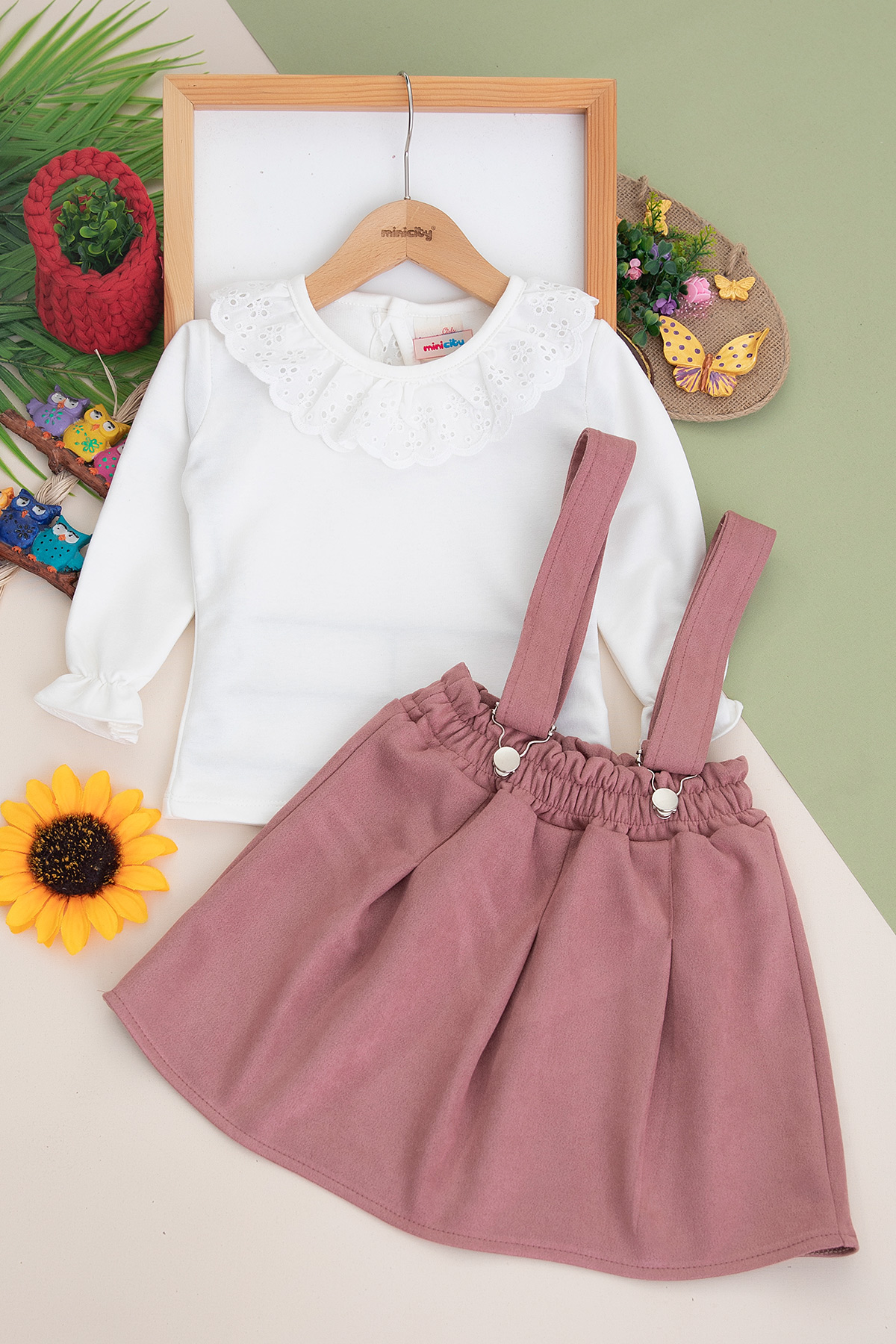 Kız Çocuk Eteği Düz Süet Salopet Takım - 1088 (3-7 Yaş)