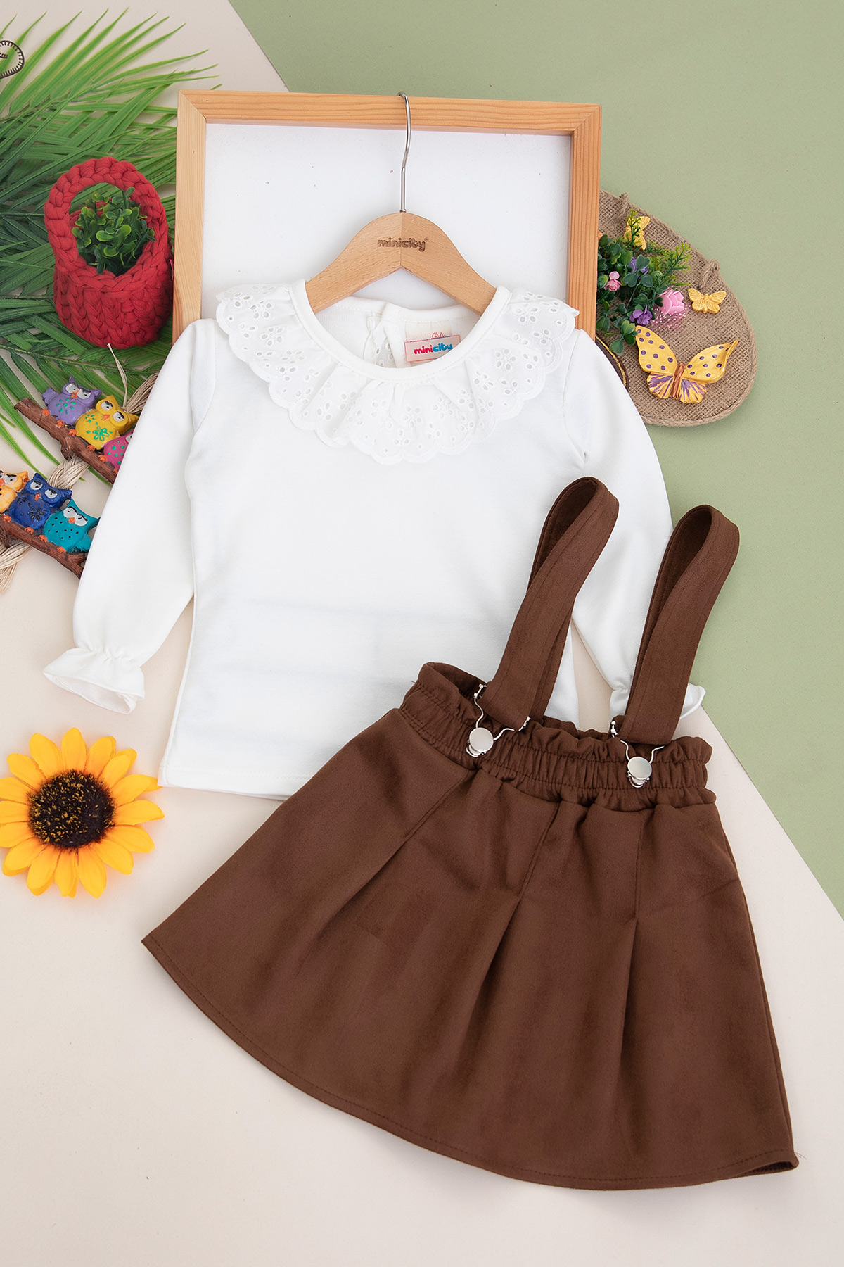 Kız Çocuk Eteği Düz Süet Salopet Takım - 1088 (8-12 Yaş)