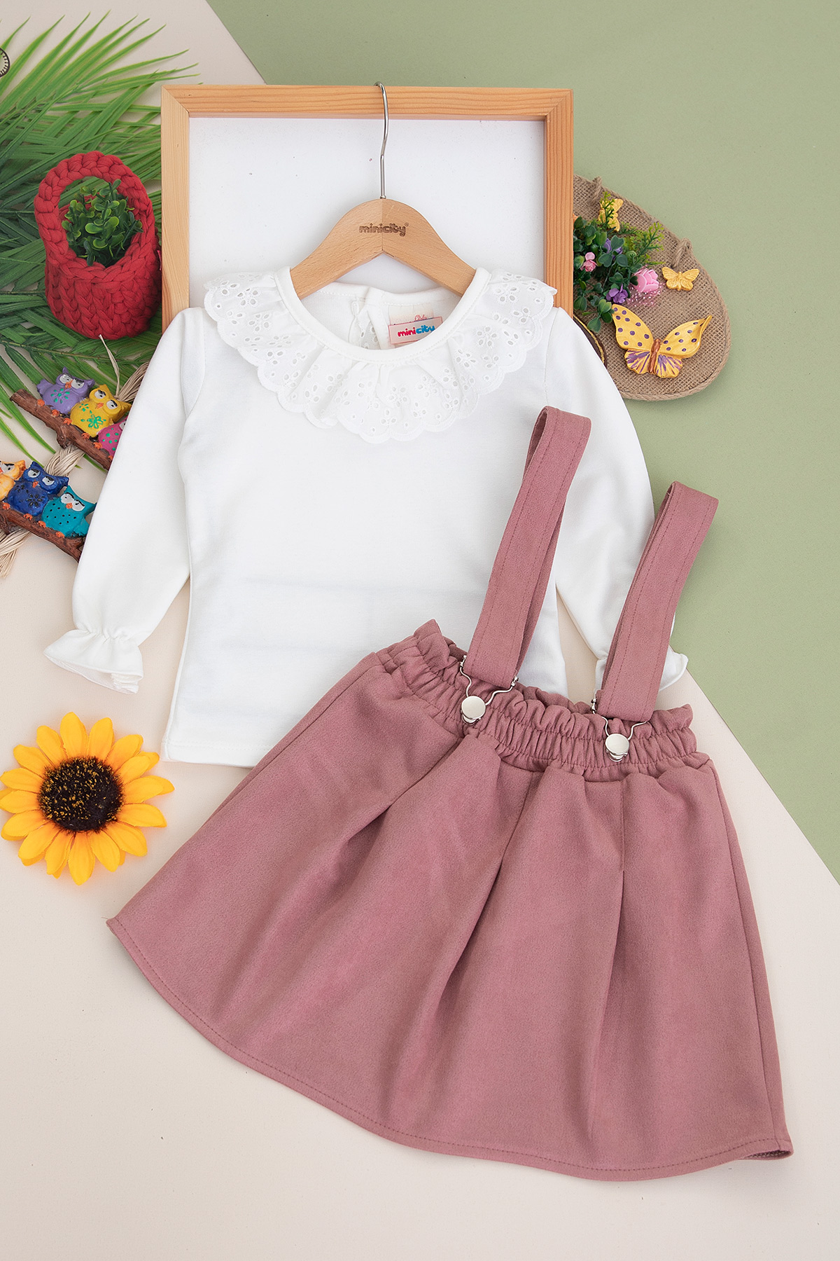 Kız Çocuk Eteği Düz Süet Salopet Takım - 1088 (8-12 Yaş)