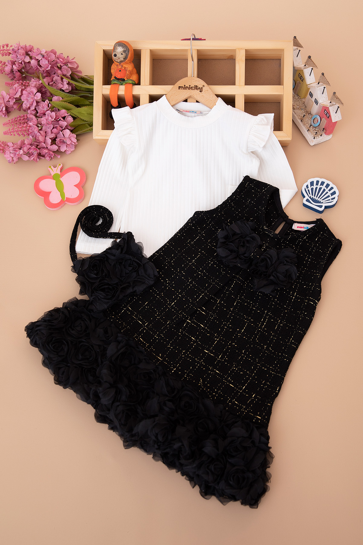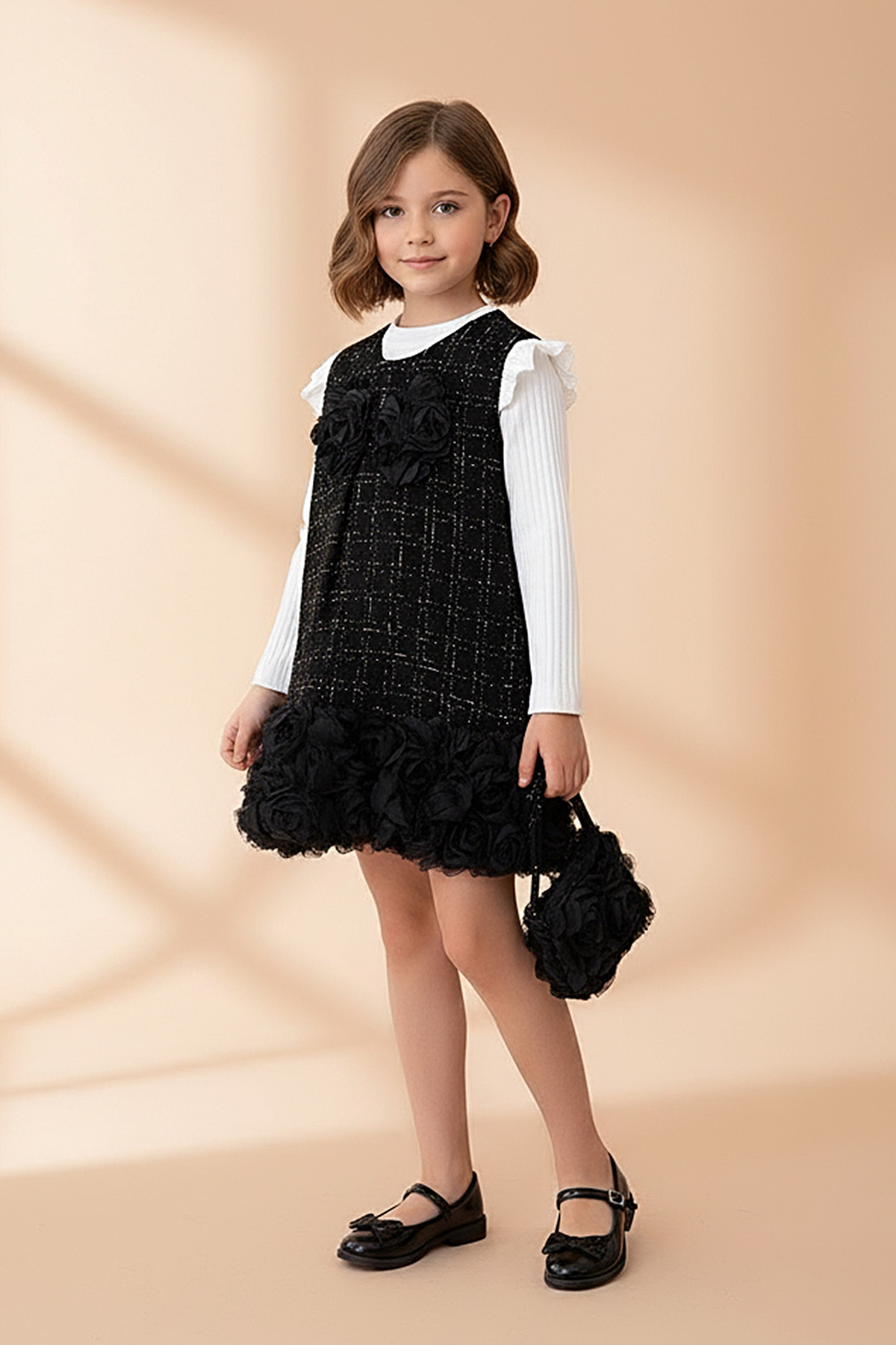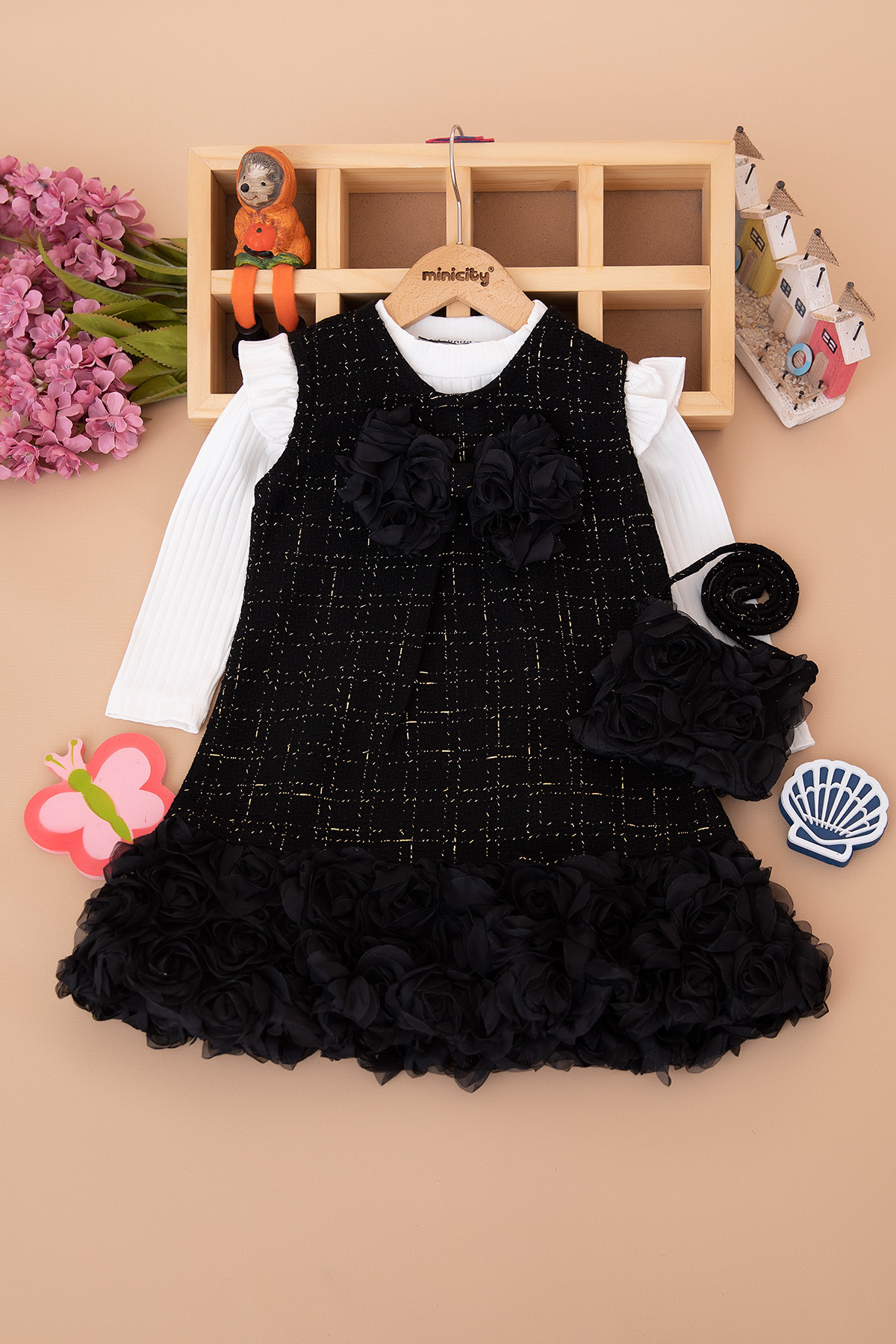 Kız Çocuk Eteği Güllü Çantalı Elbise - 317 (7-10 Yaş)