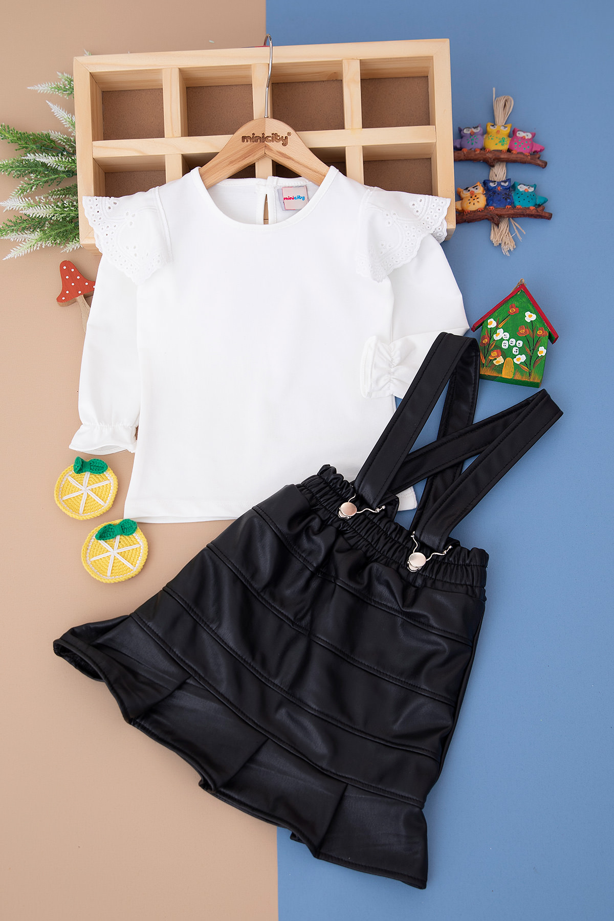 Kız Çocuk Eteği Kat Kat Deri Salopet Takım - 1010 (3-7 Yaş)