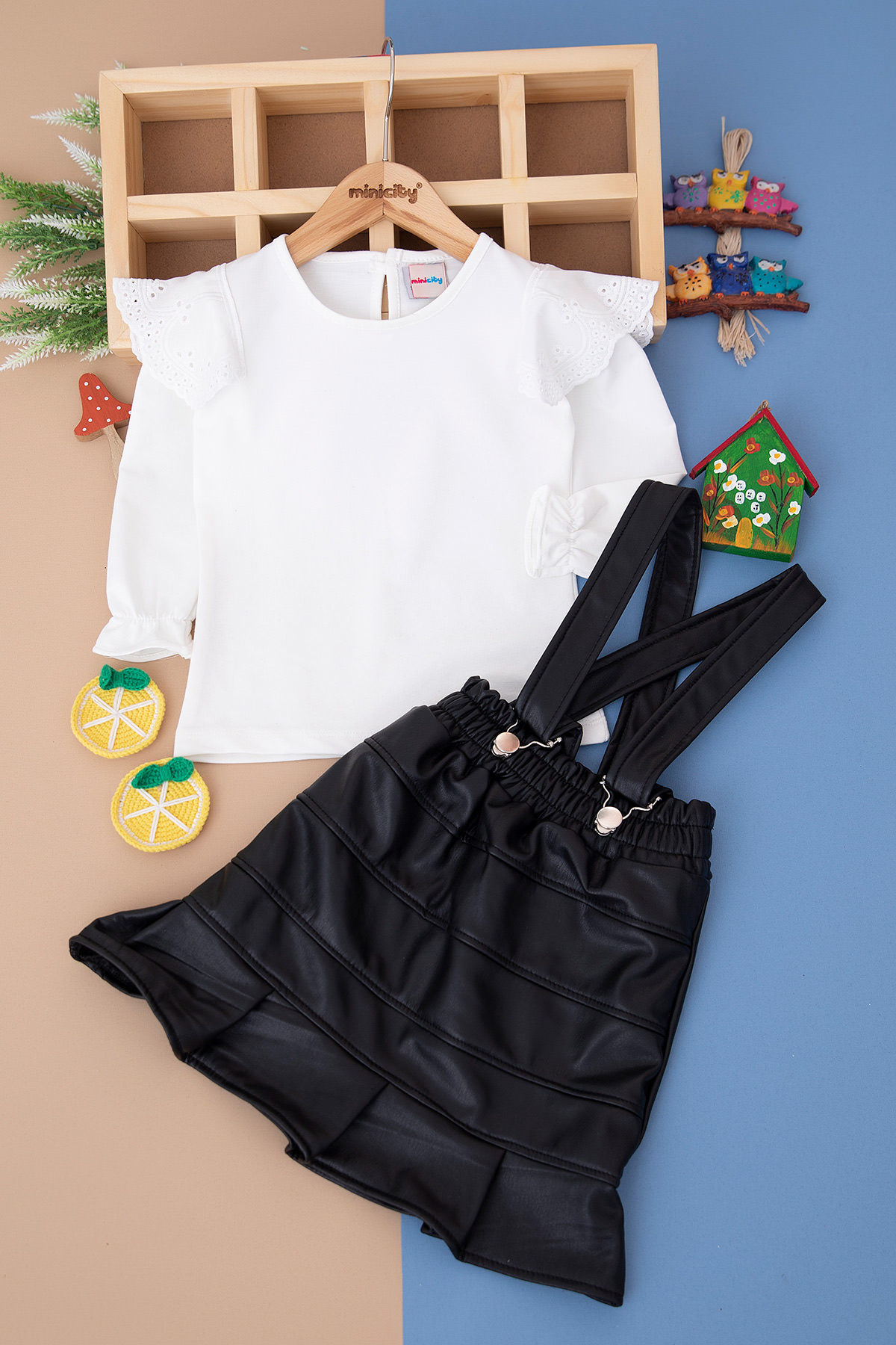 Kız Çocuk Eteği Kat Kat Deri Salopet Takım - 1010 (8-12 Yaş)