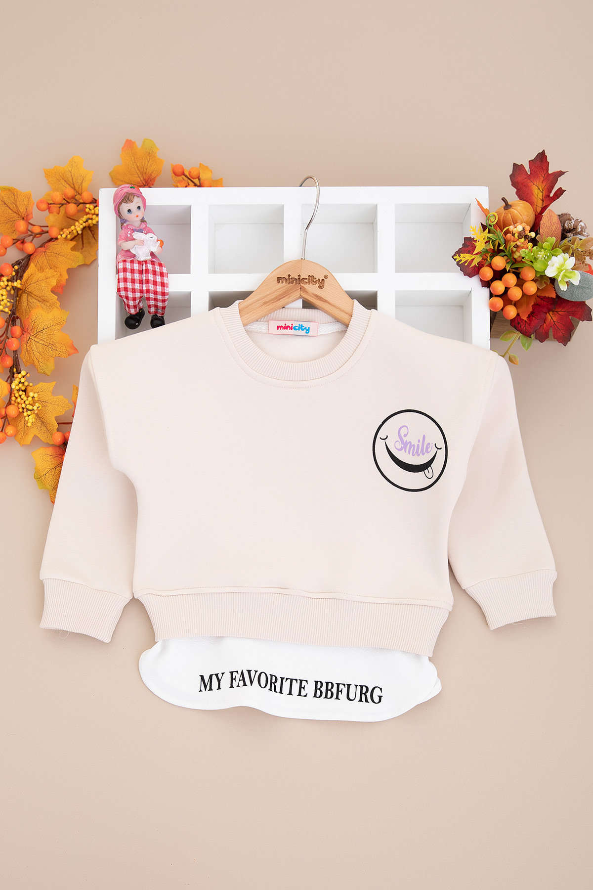 Kız Çocuk Eteği Parçalı Smile Üçip Sweat - 4108 (3-7 Yaş)