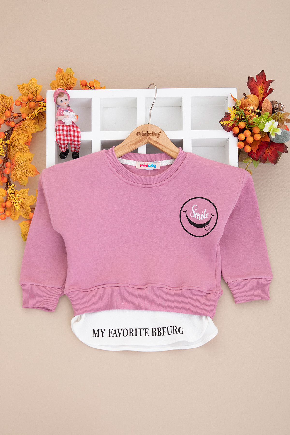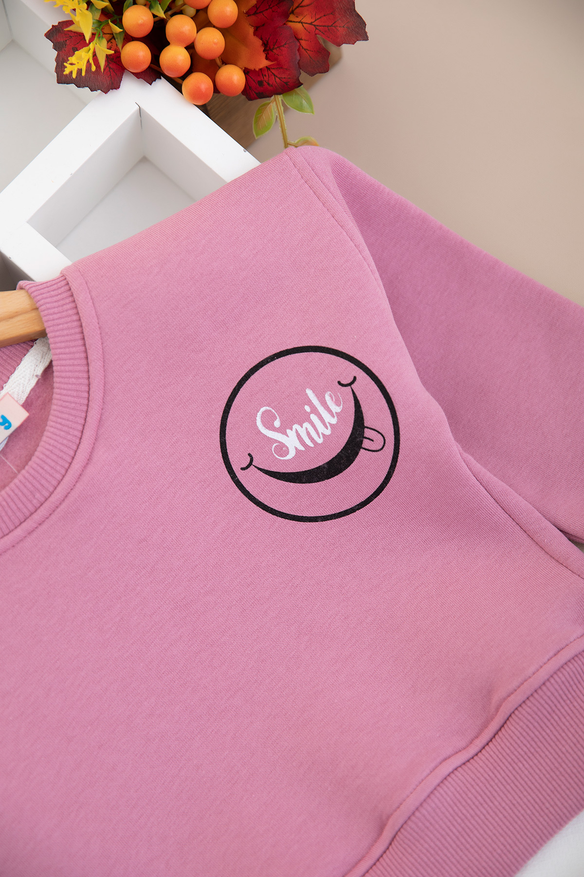 Kız Çocuk Eteği Parçalı Smile Üçip Sweat - 4108 (3-7 Yaş)