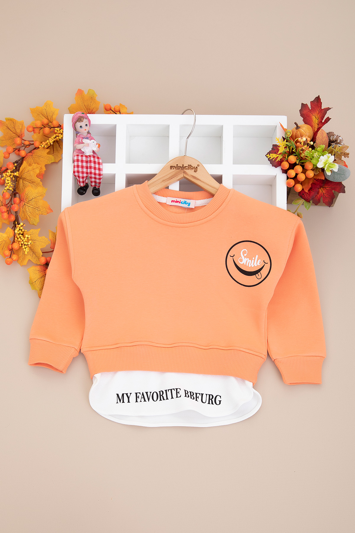 Kız Çocuk Eteği Parçalı Smile Üçip Sweat - 4108 (3-7 Yaş)