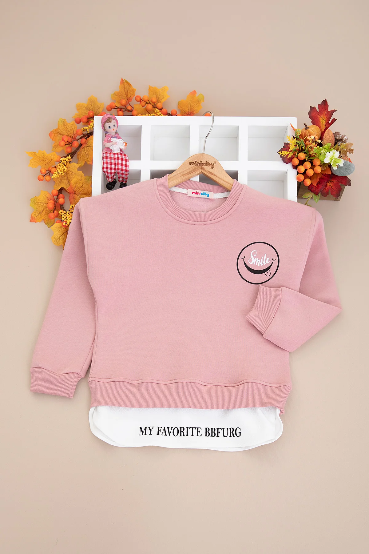 Kız Çocuk Eteği Parçalı Smile Üçip Sweat - 4109 (8-12 Yaş)