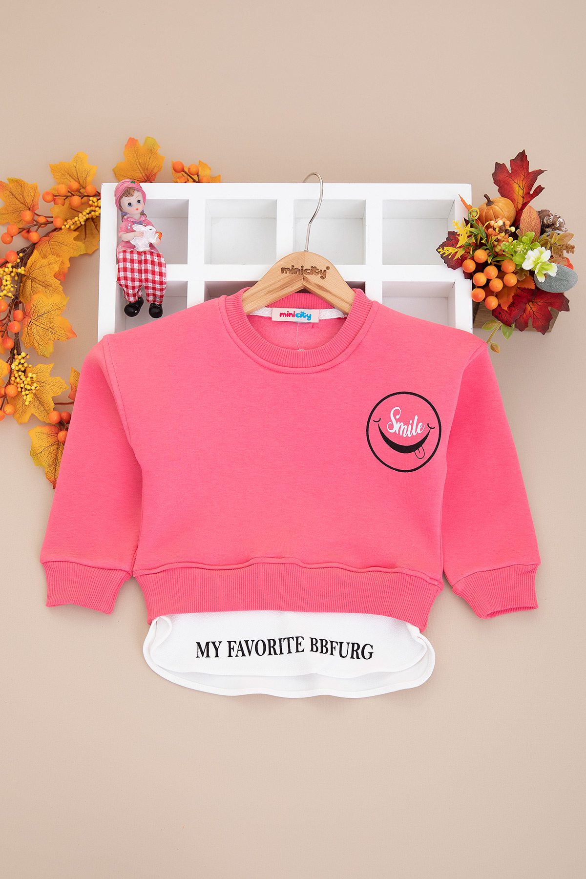 Kız Çocuk Eteği Parçalı Smile Üçip Sweat - 4109 (8-12 Yaş)