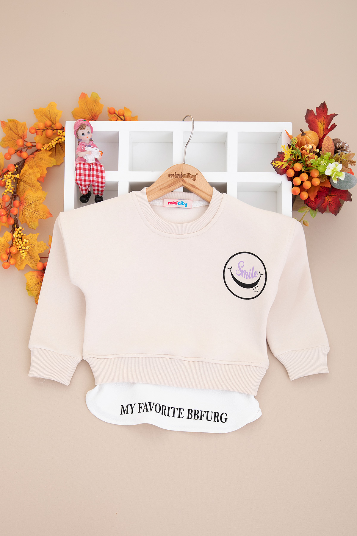Kız Çocuk Eteği Parçalı Smile Üçip Sweat - 4109 (8-12 Yaş)