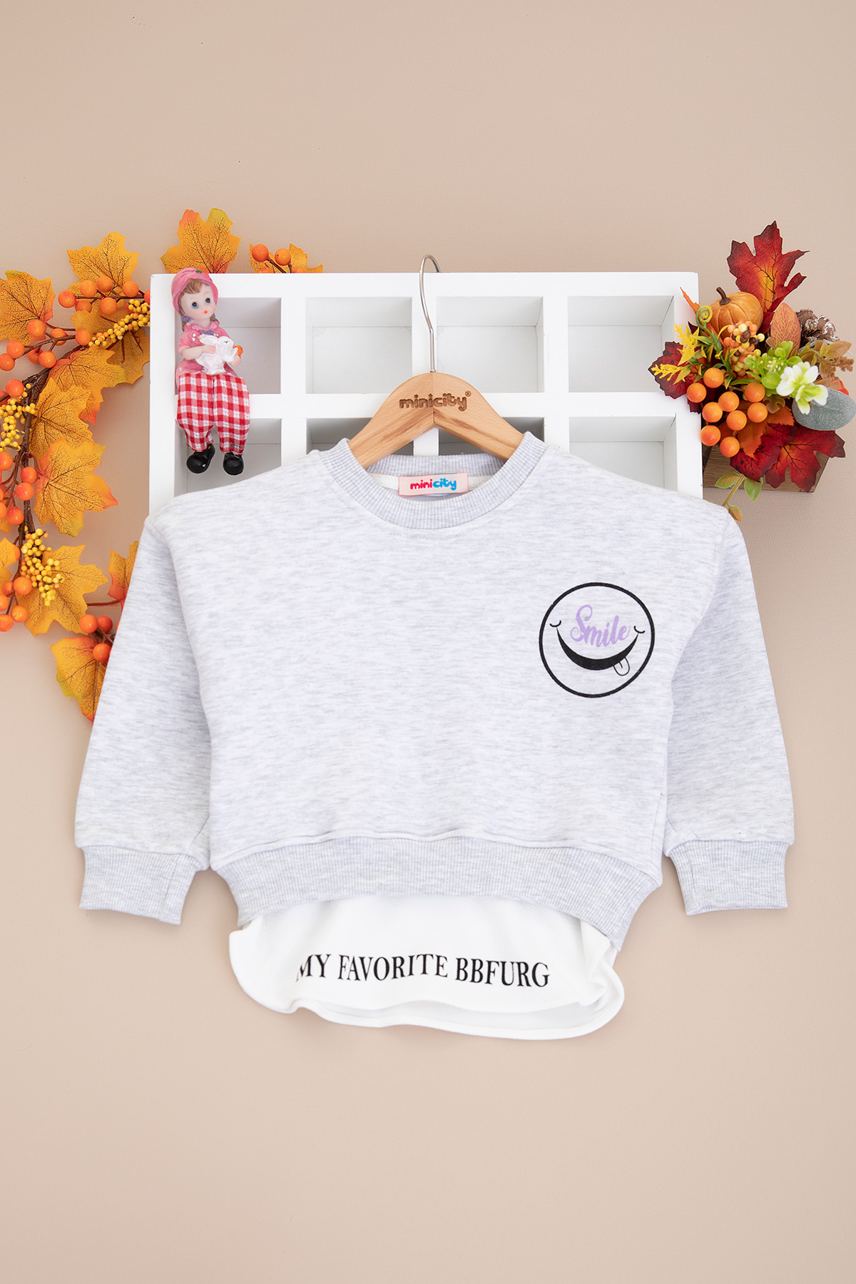 Kız Çocuk Eteği Parçalı Smile Üçip Sweat - 4109 (8-12 Yaş)