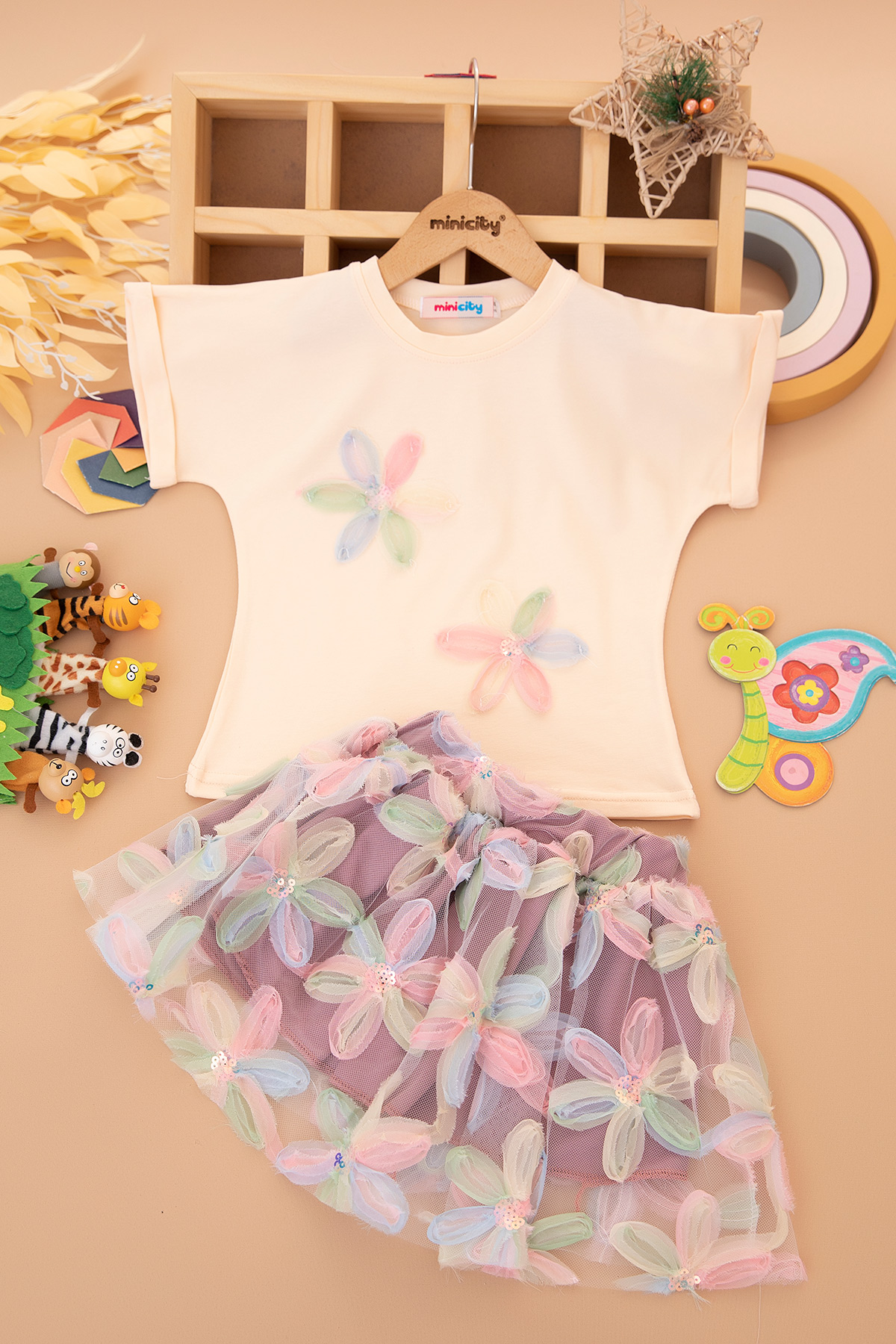 Kız Çocuk Eteği Tüllü Çiçekli Takım - 7202 (3-6 Yaş)