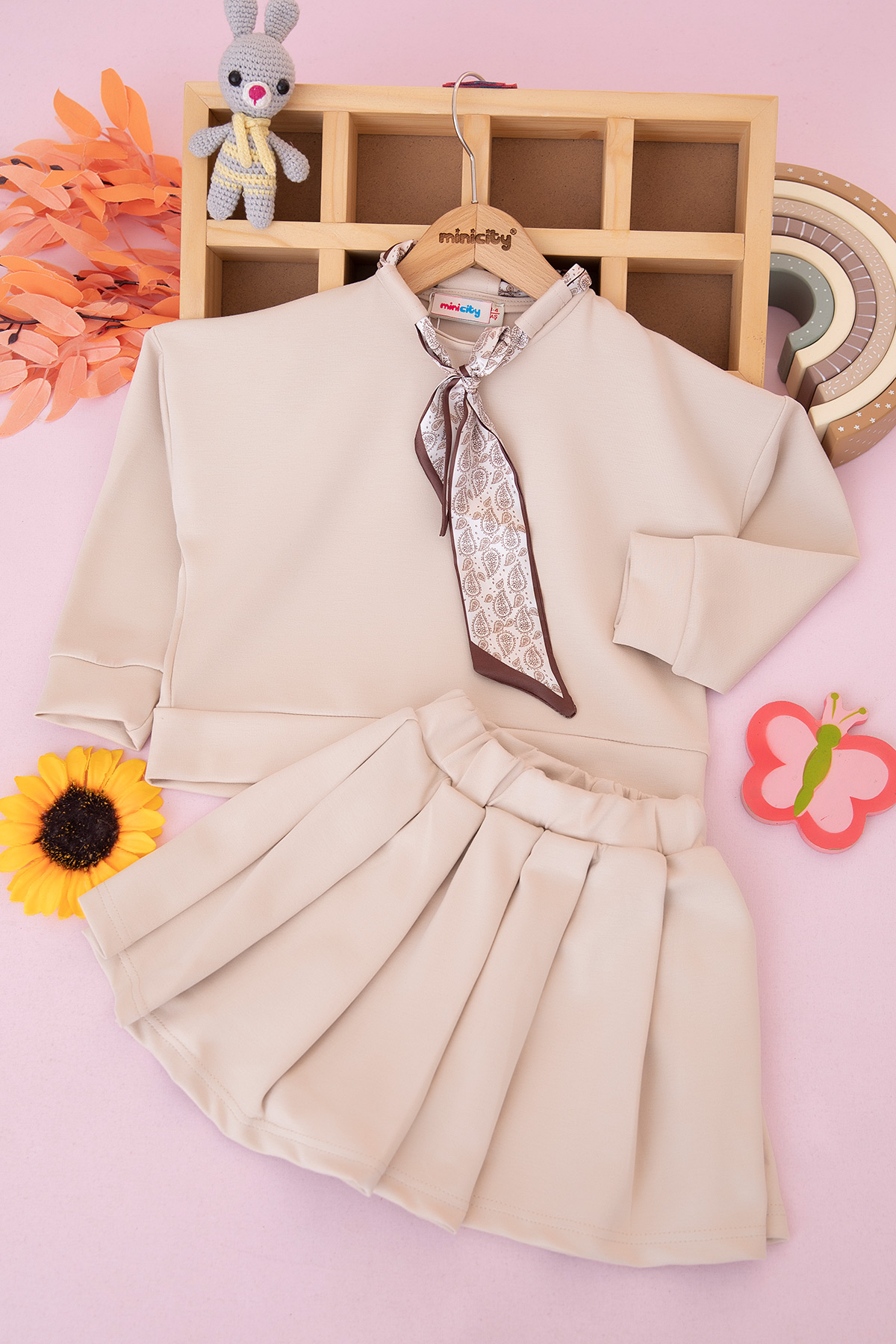 Kız Çocuk Etekli Fularlı Oysho Takım - Y-115 (3-10 Yaş)