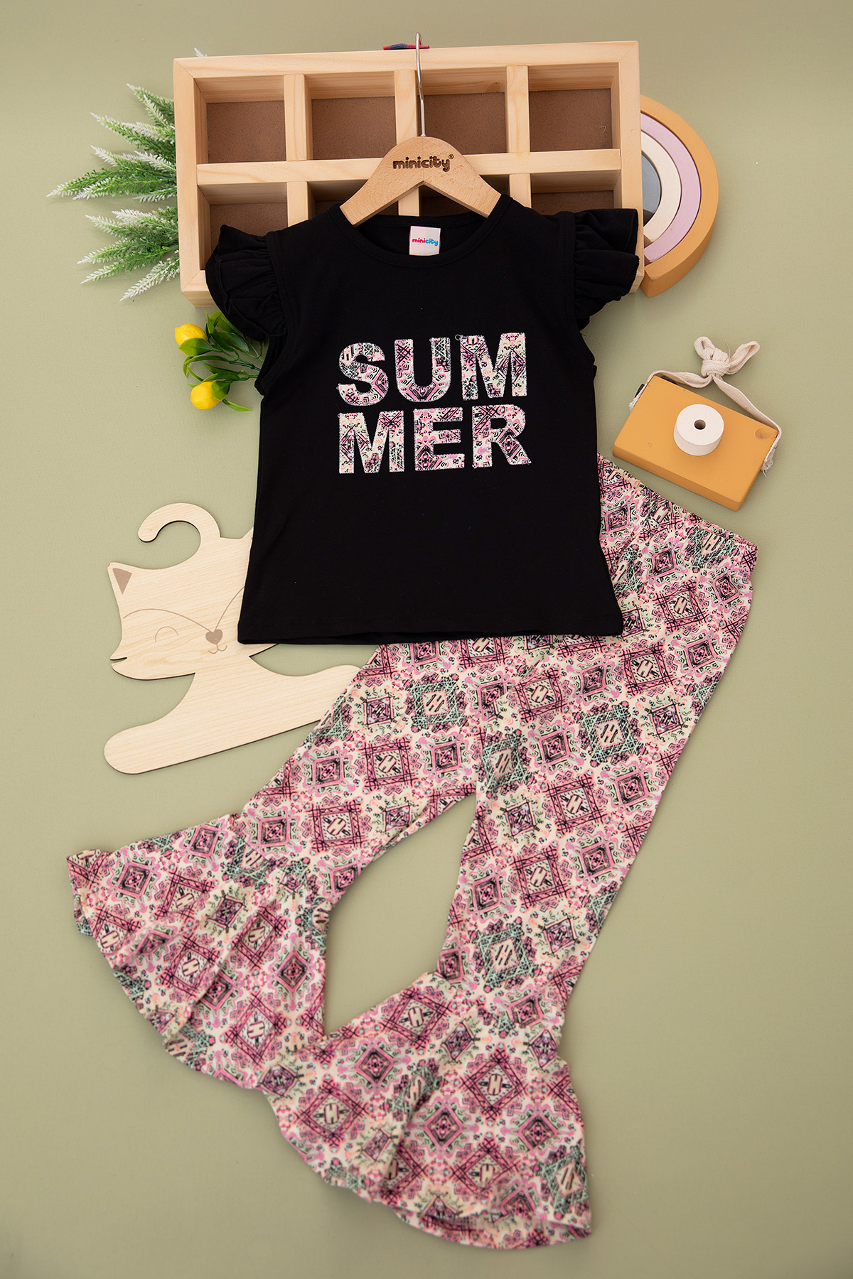 Kız Çocuk Etnik Baskılı Taytlı Takım - 10596 (5-9 Yaş)